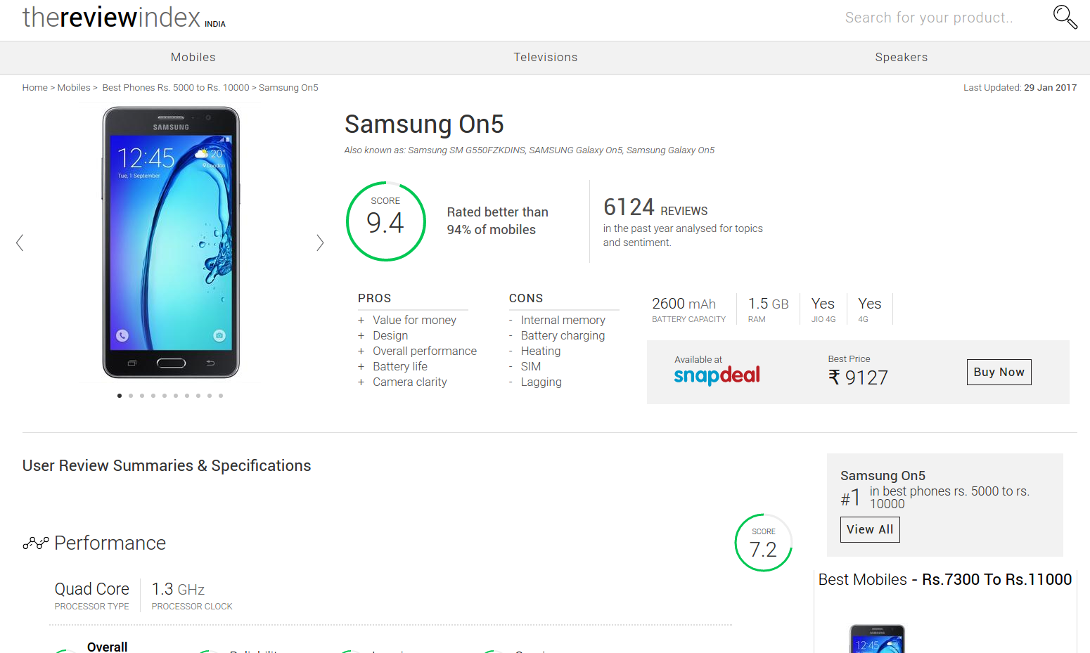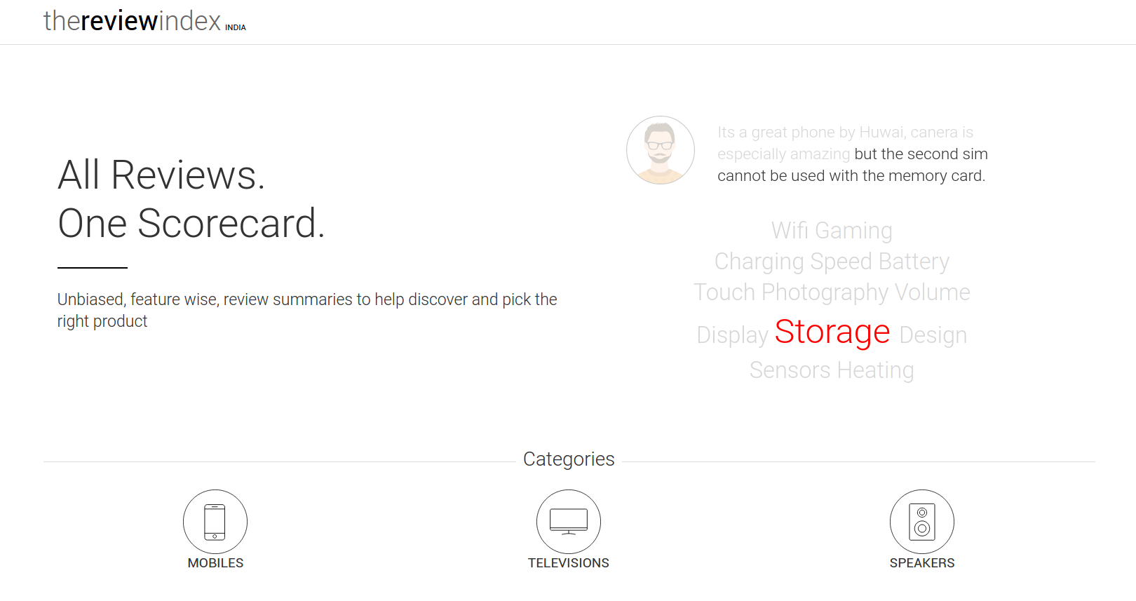 There is a lot of opinionated unstructured content online for products, in the form of blogs, videos, user and expert reviews. It’s impossible for an individual to read through, interpret a significant amount of this data, and yet make a well informed purchase decision. Typical problems for the average consumer looking to research products online include - (1) too many choices and sites with too much content (2) differentiating genuine content from spam (3) dealing with disparity in opinion TheReviewIndex (https://thereviewindex.com) is a discovery and research destination for electronics that aims to simplify the online product research process by mining opinion and reviews from across different sources on the internet. This is then presented as an unified, unbiased, feature-wise summary scorecard of the aggregate opinion to the end user. A search based discovery engine helps users discover products based on their high level needs.