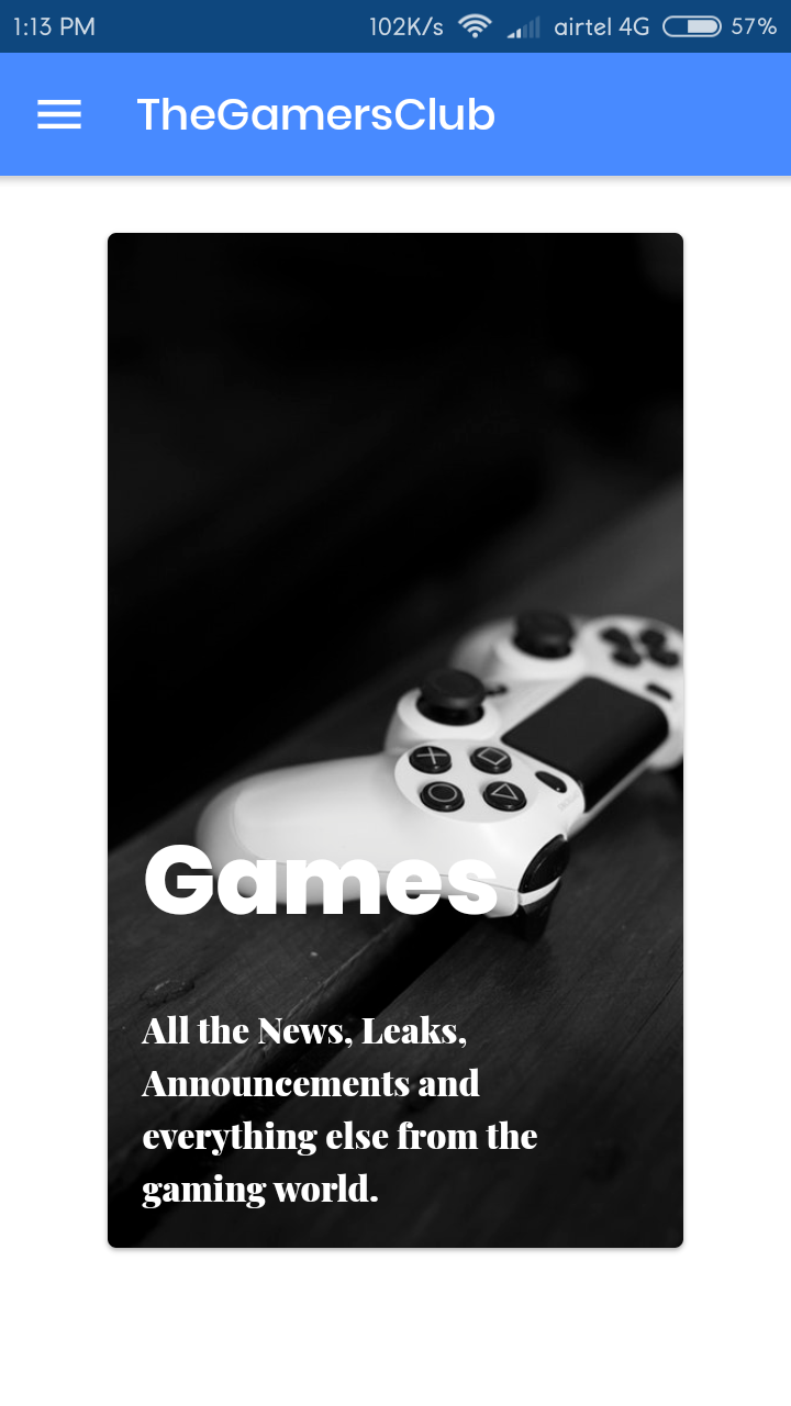TheGamersClub is a PWA(Progressive Web App) that shows daily summarized gaming news and also a few gaming related videos. Most of the gaming news websites don't have a native app or even a PWA. So I thought that this app can provide the important gaming news that we all guys want in a summarized format along with a clean UI.