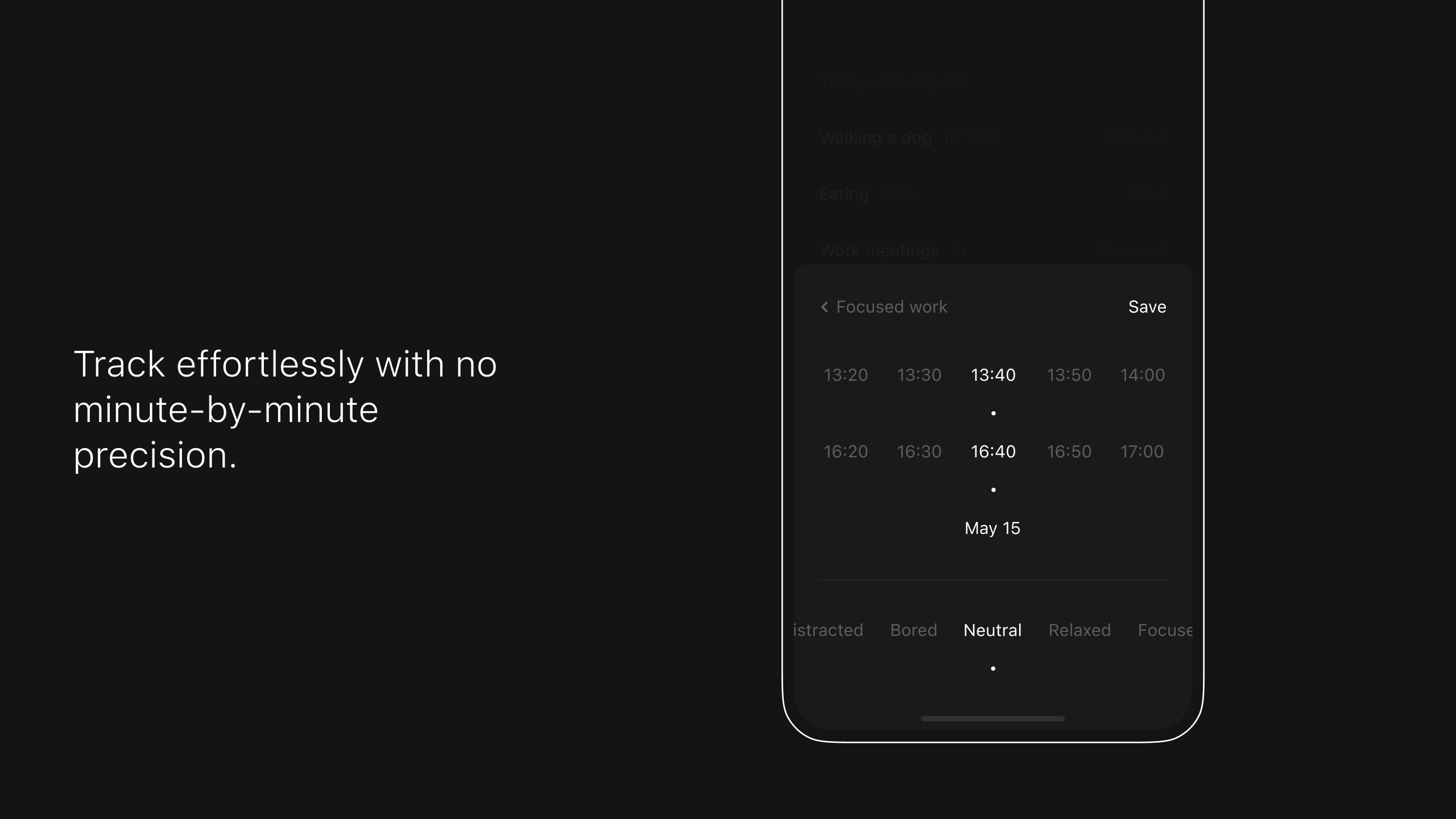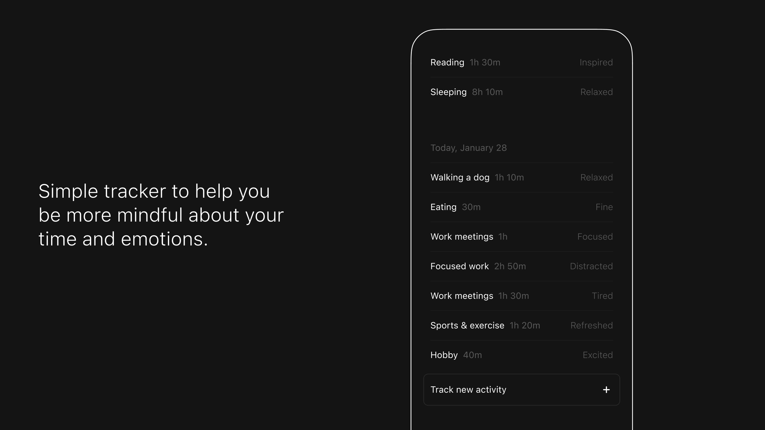 Then is an activity and mood diary that helps you analyze how you spend your time and how things you do influence your emotions. You can easily track what you do, how much time it takes, and how it makes you feel. Whether you choose to focus on just one activity, like time spent working, or record everything you do during the day, detailed insights will help you identify patterns and get a breakdown of positive and negative influences in your daily life. Its goal is to offer a simple, clean and calming experience to help you be more mindful about your time and emotions.