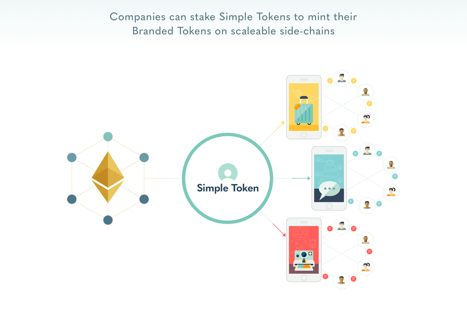 Simple Token enables any business to launch a branded cryptocurrency on open Ethereum sidechains. We're building a network and ecosystem for consumer app tokenization. Join in and get all the benefits of blockchain tokens without the high costs and risks of building everything yourself from scratch. -Simple Development Focus on your users and your marketplace rather than on learning and developing blockchain infrastructure. Leverage the Simple Token protocols to easily tokenize your app. -Customize the Experience Simple Token lets you design a unique experience. Brand your token, set desired exchange rates and allowable fluctuations, setup various transaction types and user incentives. You own the experience from end to end -Analyze & Optimize It's your economy, we give you the tools to manage it. Simple Token includes world class monitoring, analytics, macro and micro economy trends, fraud detection and prevention, and security.