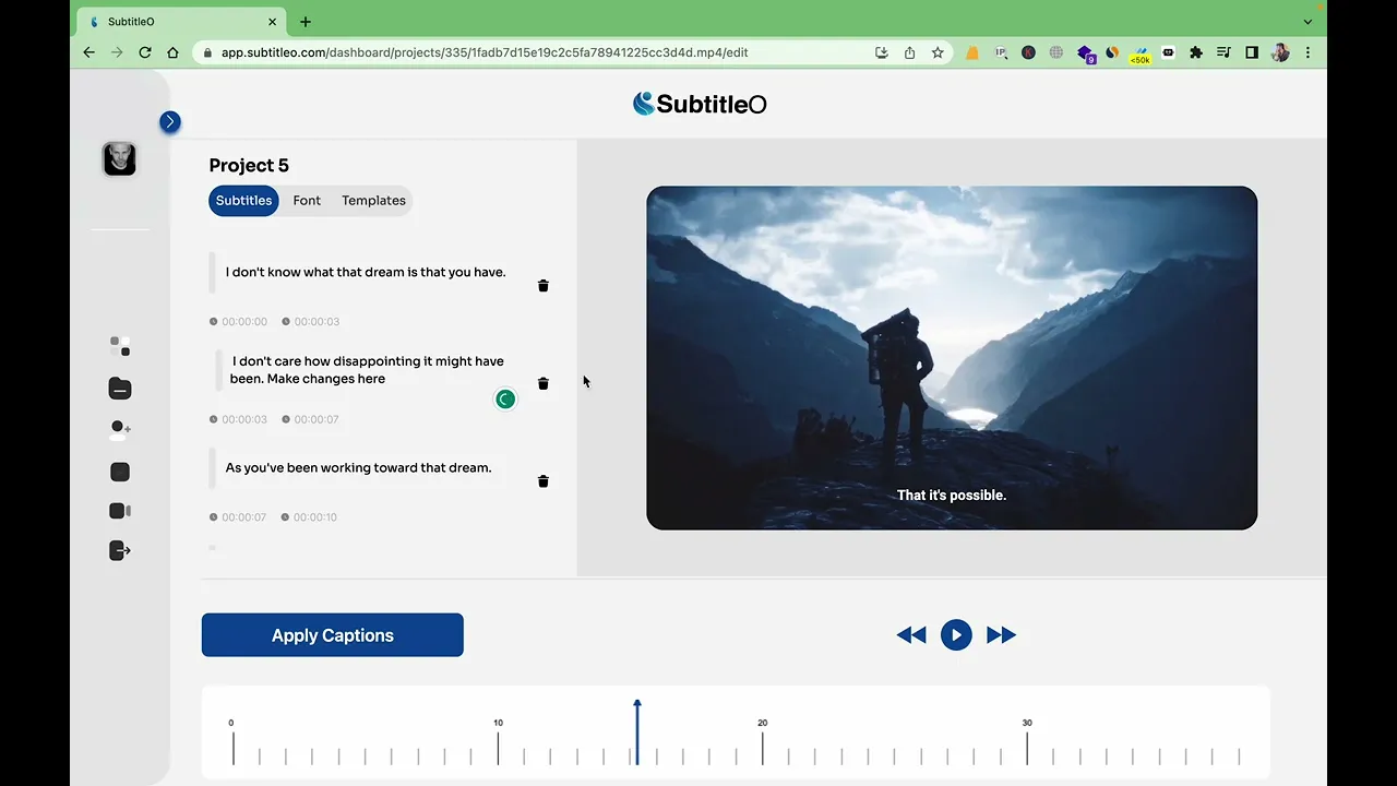 SubtitleO is a web-based tool designed to add captions to your videos. Using advanced technology, it transcribes the audio in your video into text, creating accurate captions.