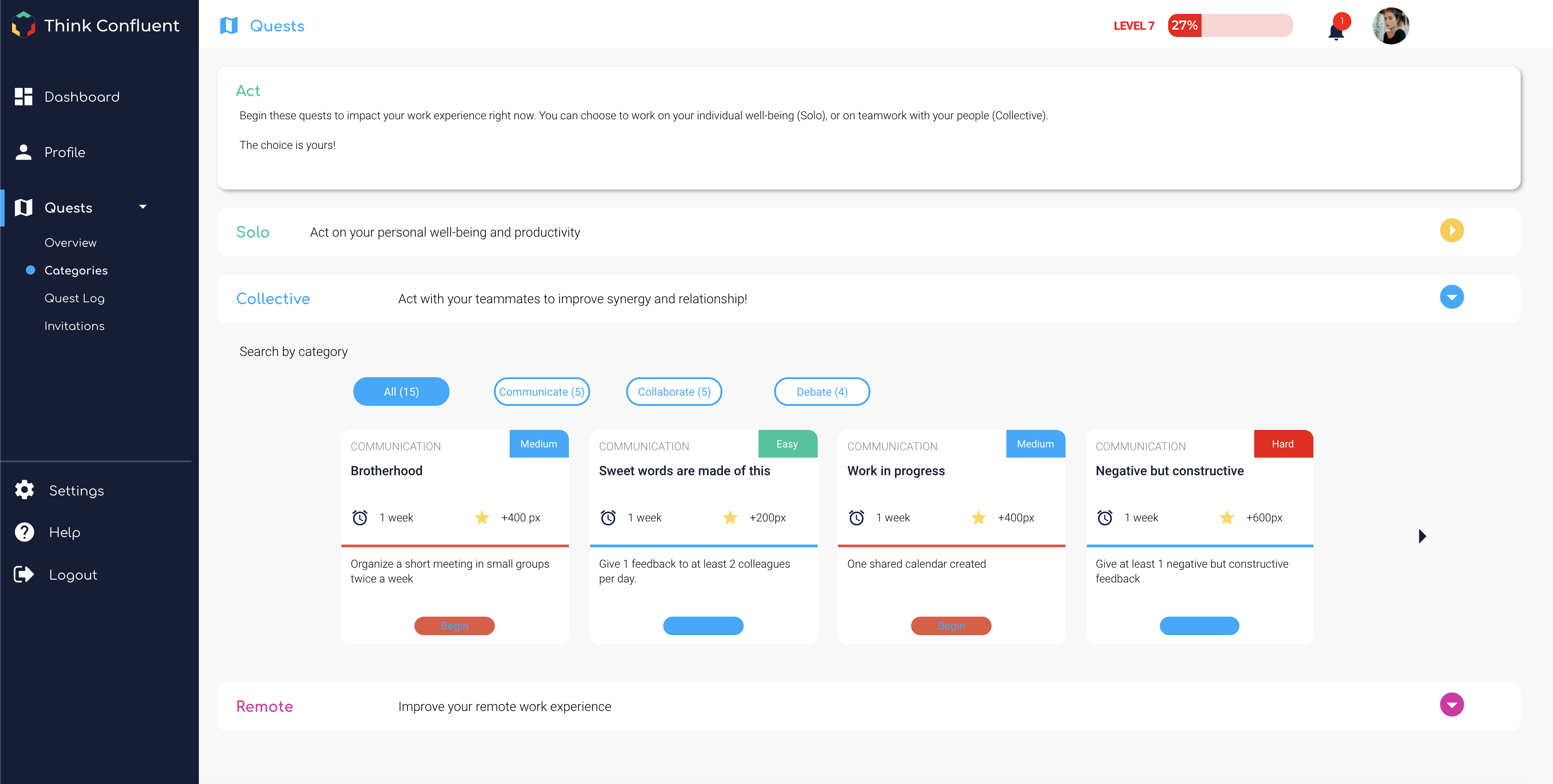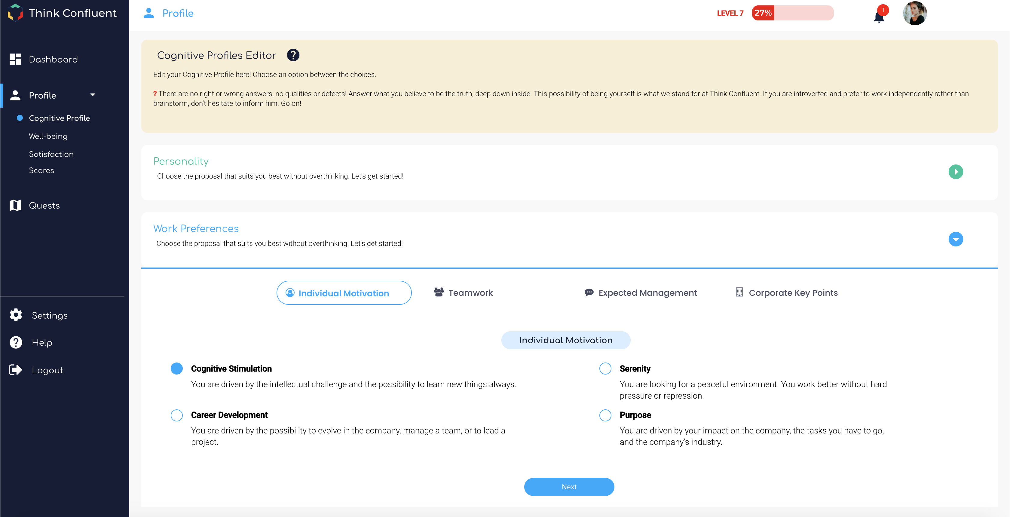 Since the COVID-19 crisis, companies have to adapt to a mix of office-based and remote work. To facilitate this transition, Think Confluent is a software allowing you to offer personalized work experience to each of your employees, taking into account their personalities, constraints, and expectations. We determine their work profiles, evaluate whether the work experience matches their expectations, and offer training sessions adapted to their needs.