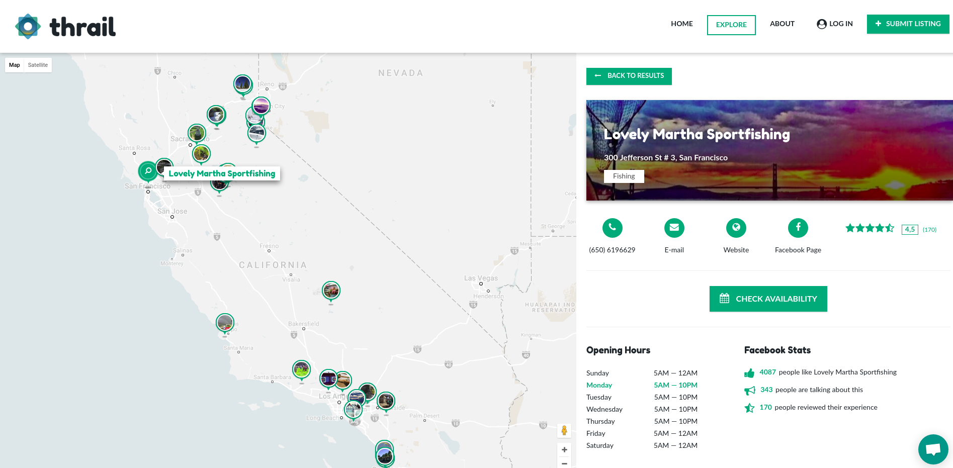 Thrail helps you discover the outdoor activities around you. Our goal is to build a high quality database of all the outdoor activities accross the world by manually verifying each one of the listings. Our explore tool allows you to filter activities based on your area of interest and what kind of outdoor adventures you're up to. Find information about a certain outdoor activity provider such as opening hours, directions, ratings and other.