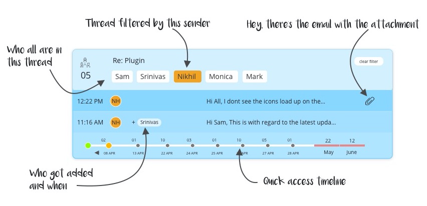 Thrdzz is a chrome extension that makes using email threads in Gmail easy. It's a project that came up based on a need we discovered in our daily use of gmail for work and otherwise. Hope this helps the larger community our there, and look forward to your feedback to improve this going ahead.