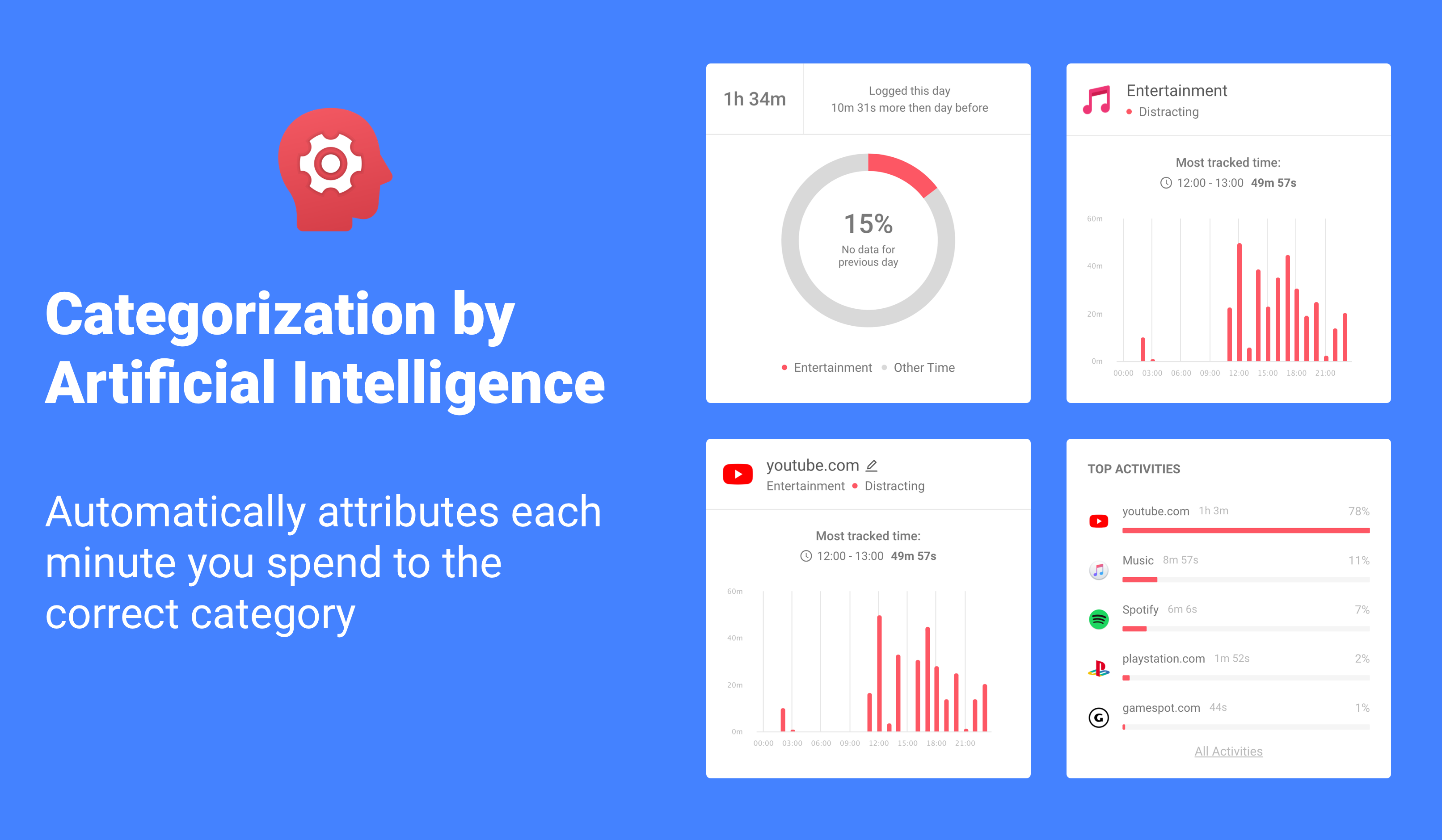 Timefibers is automatic website and app tracking tool. Everything you do is automatically categorized so you can quickly see the time you spend on specific apps, websites, and projects and gauge your daily productivity.