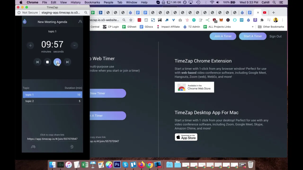 Create agendas, countdown timers and stopwatch timers. Share view-only access with others on your call. Keep your virtual calls on track, and on time.