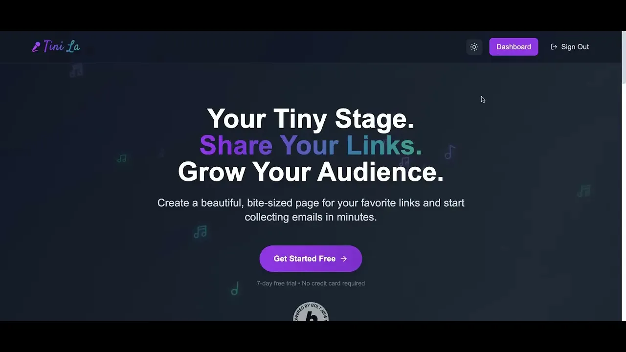 tini.la is your tiny stage for sharing curated links and capturing email leads with ease. Create sleek, minimalistic link pages that showcase your best content while turning visitors into subscribers. Perfect for creators and professionals who want a simple, beautiful way to connect and grow their audience.