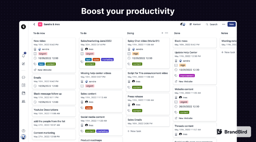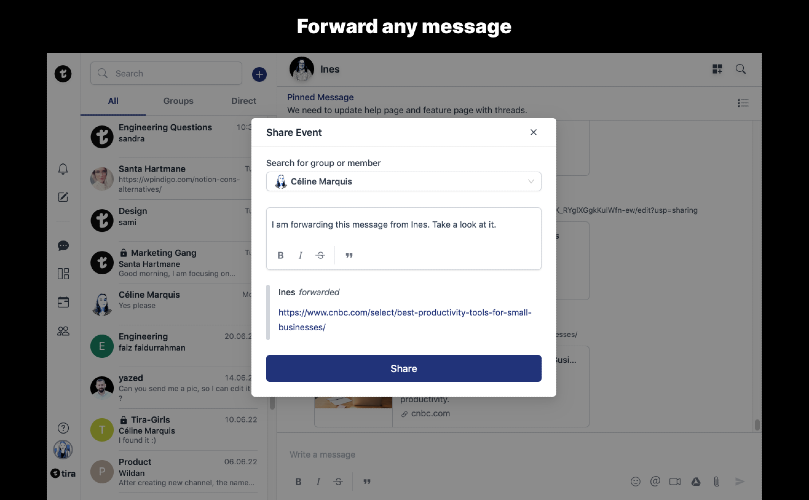 Tira is software designed to help teams manage projects, organize work, and collaborate seamlessly in order to boost productivity. Chat with your team, create projects, manage tasks, and organize your work. All from one place.