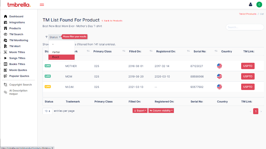 Tmbrella is a B2B SaaS that protects e-commerce entrepreneurs from the consequence of infringement. We help e-sellers stay safe by avoiding potential trademark and copyright disputes. Online retailers have to constantly be on the lookout for legal issues with trademarks in their product listings. Sometimes these issues can lead to a trademark holder instituting a takedown and shutting down an online store. Other times, a business may run into serious problems with intellectual property rights that they didn't know they were infringing upon. The problems mentioned above affect sellers on multiple levels and cost additional money, time and stress. Analyzing the key phrases in users' product listings ensures that they can stay protected from liability and infringement claims. To put it simply, Tmbrella is a service that saves e-commerce entrepreneurs from the consequence of infringement.