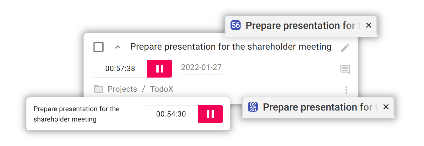 TodoX seamlessly merges task management and time tracking with multiple quality of life features for better focus and retrospection. - task management: tasks, projects, deadlines, repeated tasks, notes - time tracking: time can be recorded separately on any task - customizable widgets panel: notes, time by projects, time by tasks, etc. - analytics: aggregate time by tasks or projects for any period and other stats - background sync between devices - works on any platform, installable as PWA on iOS and Android
