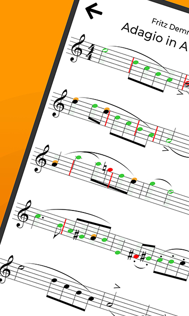 tonestro is a practice app (iOS & Android) for wind instruments which provides digital sheet music and gives immediate feedback on pitch & rhythm with a special focus on continuous motivation. Boring and monotonous practice is a thing of the past.