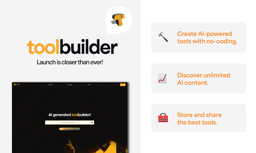 Toolbuilder is the perfect platform for building and discovering AI web apps without coding. It enables users to create AI-driven web apps with a simple prompt. Easily create your own AI tools, explore unlimited AI tools of any kind. Toolbuilder simplifies the tool building process by automating the backend using AI.