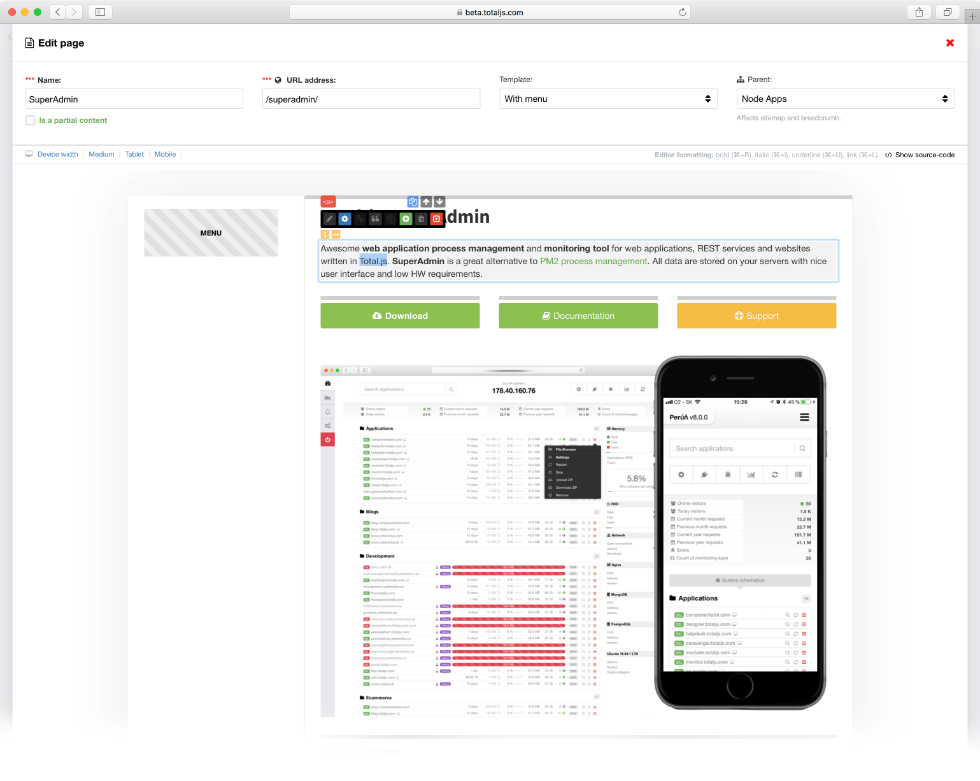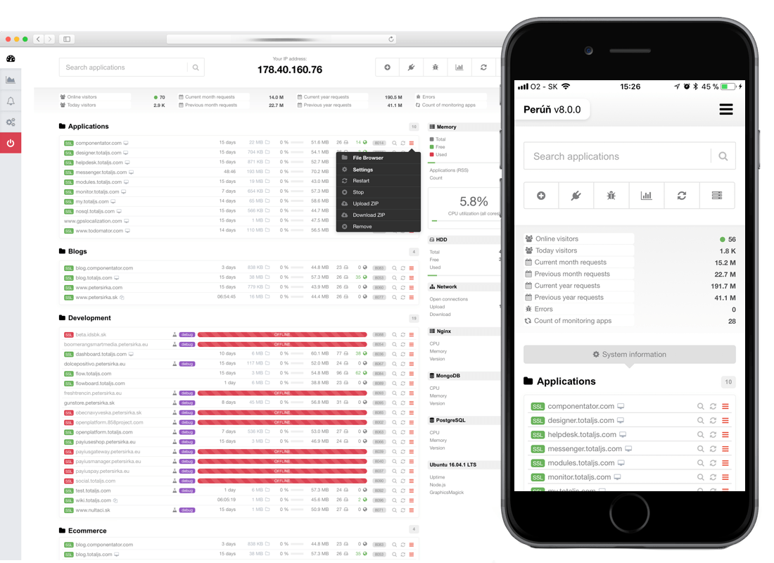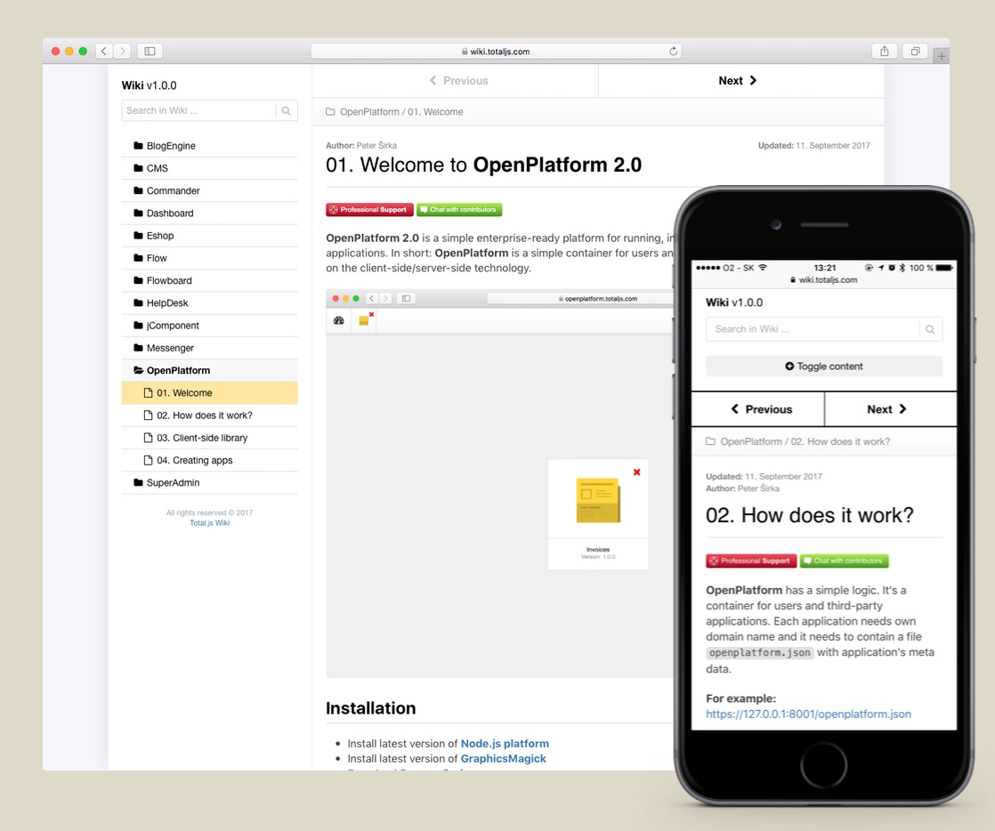 Total.js Framework is a full-featured Node.js framework that effectively improves the most important aspects of your project during its lifetime. Super fast development, extremely low maintenance costs, rock solid stability, incredible performance and easy scaling. It's our core for all projects.