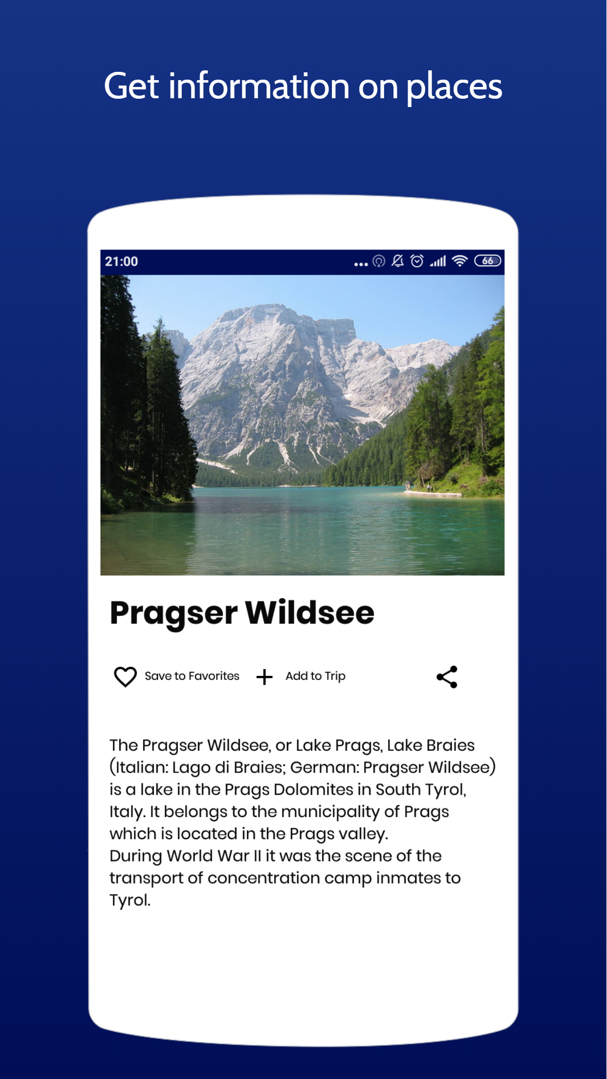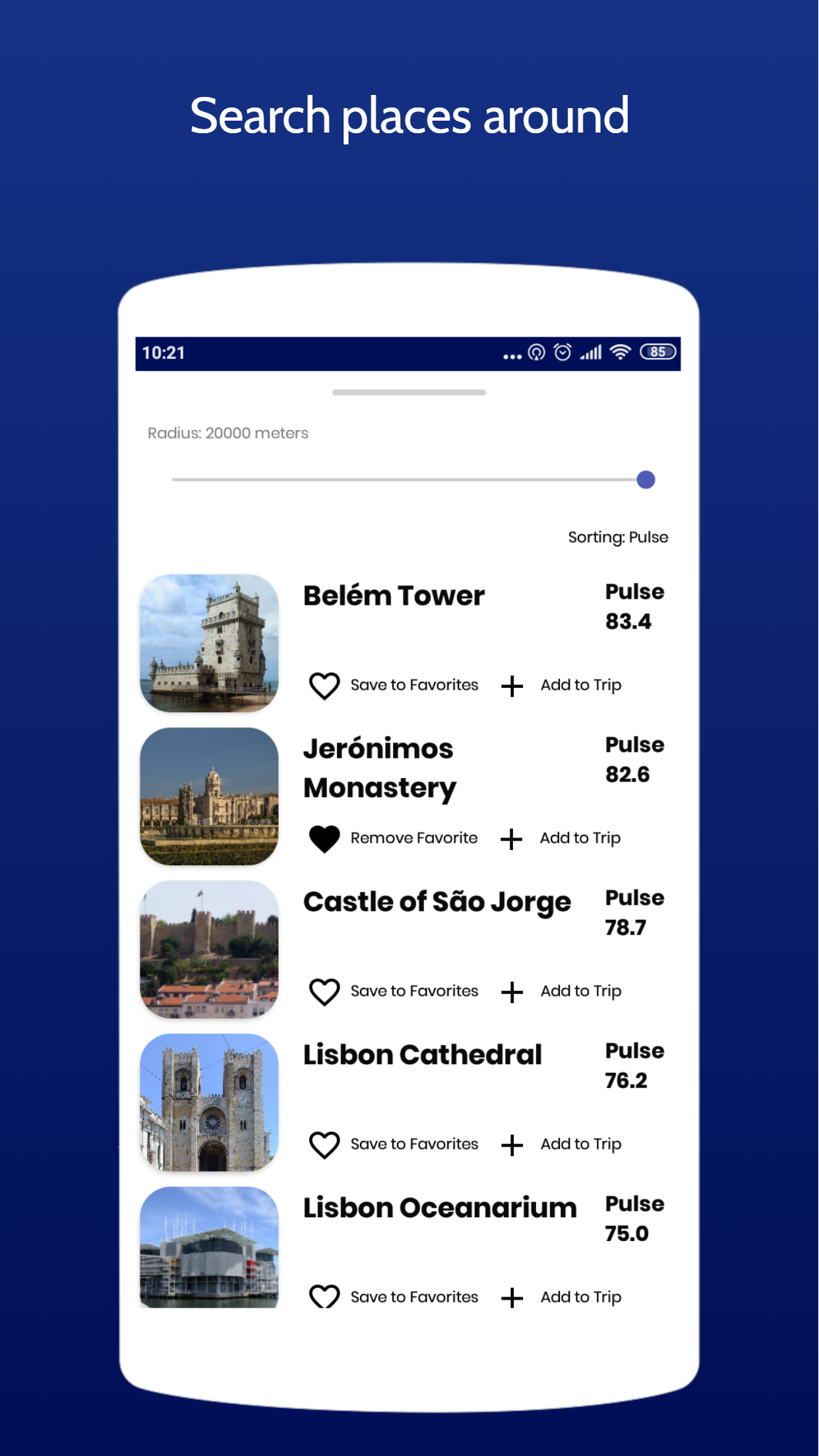 TourPickr is an Android app for tourists. Explore all kinds of tourist places on a special PULSE map. Search for big red circles to find TOP tourist places or small blue circles to find tourist places that almost nobody knows. Features that will make traveling easy: • PULSE map shows places on a scale of small blue circles to big red circles. The bigger and redder, the more familar the place is. • Save explored travel destinations to trips. Easily organize places, add notes or other information. • Synchronize & backup your trips. • Share trips with your friends. Explore together, travel together. • A large catalog of places and trip destinations organized to simple categories. Are you looking for cool lakes in Austria? Amazing castles in Britain? Splendid nature in Iceland? TourPickr has it all! All content is based on Wikipedia data.