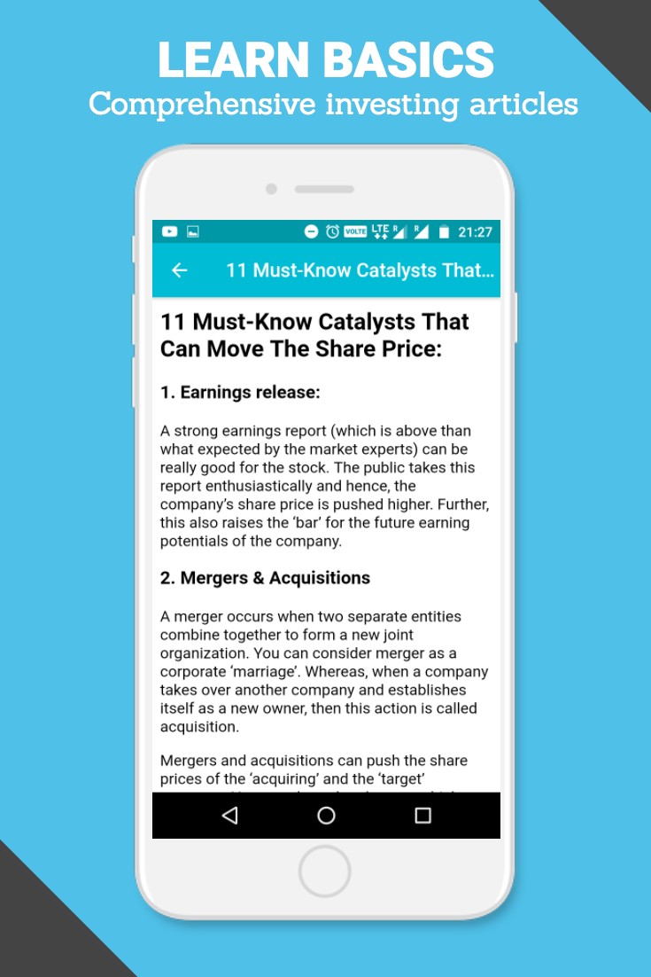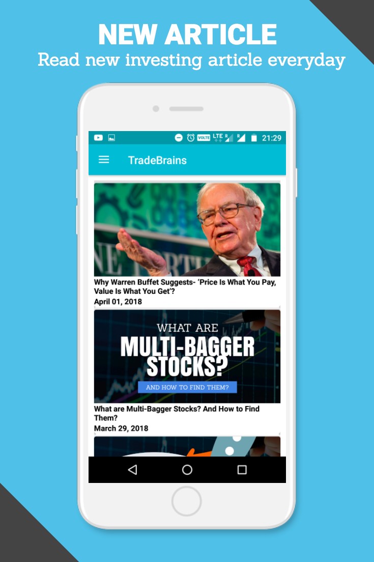 Trade brains is a FREE financial education app focused on teaching stock market investing and personal finance to the DIY (do-it-yourself) Investors. Trade Brains app will guide you how to invest in the Indian stock market with simple, easy-to-understand and original contents. Based on Indian stock market survey, the trade brains app indeed focuses on helping the stock market investor learn the concepts of value investing. Just read the investing articles carefully, follow every advice and start your journey in the Indian stock market to make consistent returns.