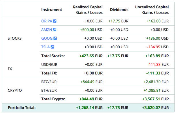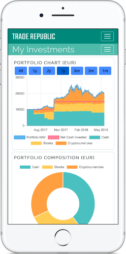 Trade Republic is the solution to simply track your investments in Stocks and Cryptocurrencies. See how each of your investments is performing instantly. Say goodbye to tracking spreadsheets. Trade Republic tracks dividends automatically for you. Global Stocks from over 40 countries and over 2000 Crypto are available.