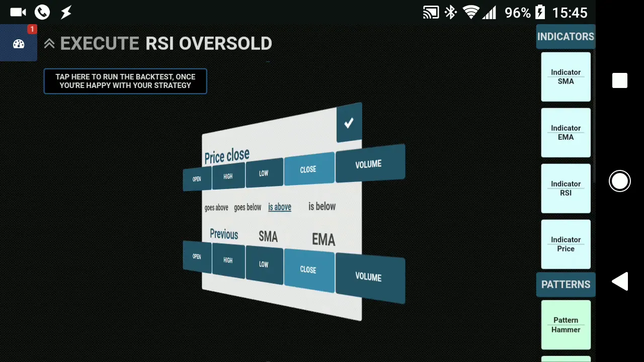 Use candle patterns and indicators to build your trading system and let TradePath do the work for you. Drag & drop, slide to adjust and backtest your trading system in seconds. TradePath helps you discover trading opportunities and instantly see the signals you're looking for.
