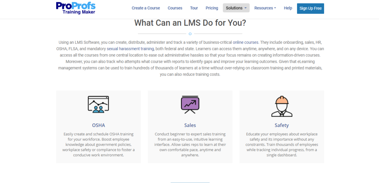 ProProfs Online Learning Management System is a simple, affordable and integrated SaaS learning management system for online training and education. It is an all-in-one software which includes online course & assessments creator, feedback tools such as online survey & poll software and even learning aids such as a flashcards maker. ProProfs LMS software provides a complete elearning and online training solution for educators, trainers, educational institutions and enterprises as well.