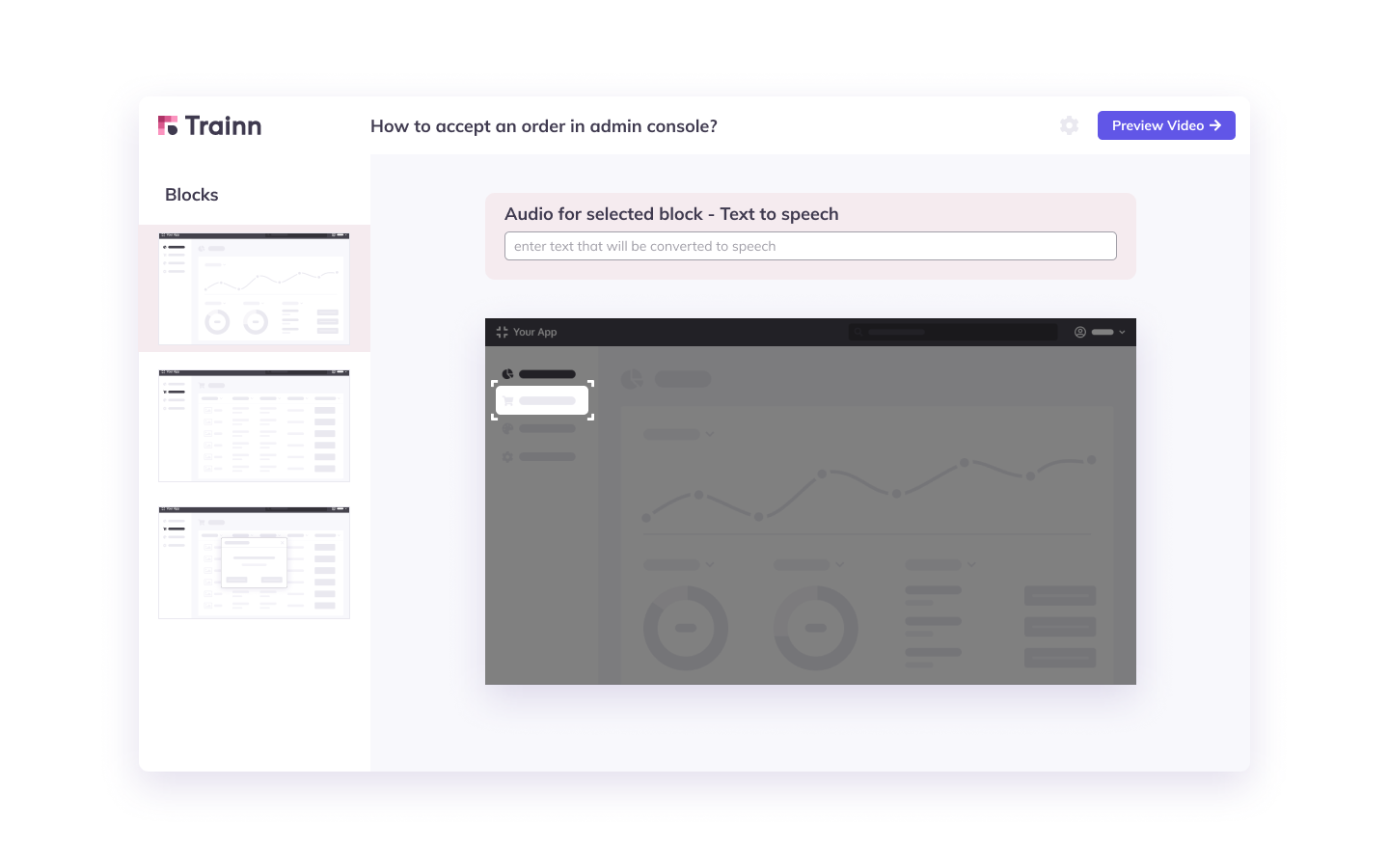 Trainn helps to create quick professional quality product training videos which can be used to accelerate product adoption. The more your customers know about how to use your product the better are the chances for upgrading revenue and less chance of churn. Remove anxiety for your users and show how your product works.