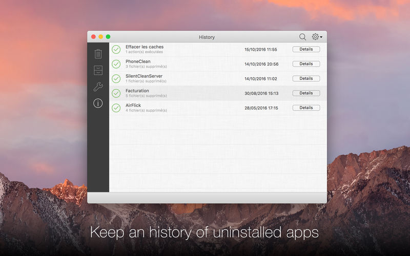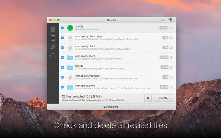 TrashMe is a powerful uninstaller with other great useful tools to clean your Mac. TrashMe removes all the files left behind when you just drag an app to the trash (temporary files, caches, settings, etc.) Main Features : - Trash any application, widget, plugin and preference pane easily - Find all related files that need to be deleted too - Protect application from being uninstalled - Automatically detect an application moved to the Trash and delete its related files