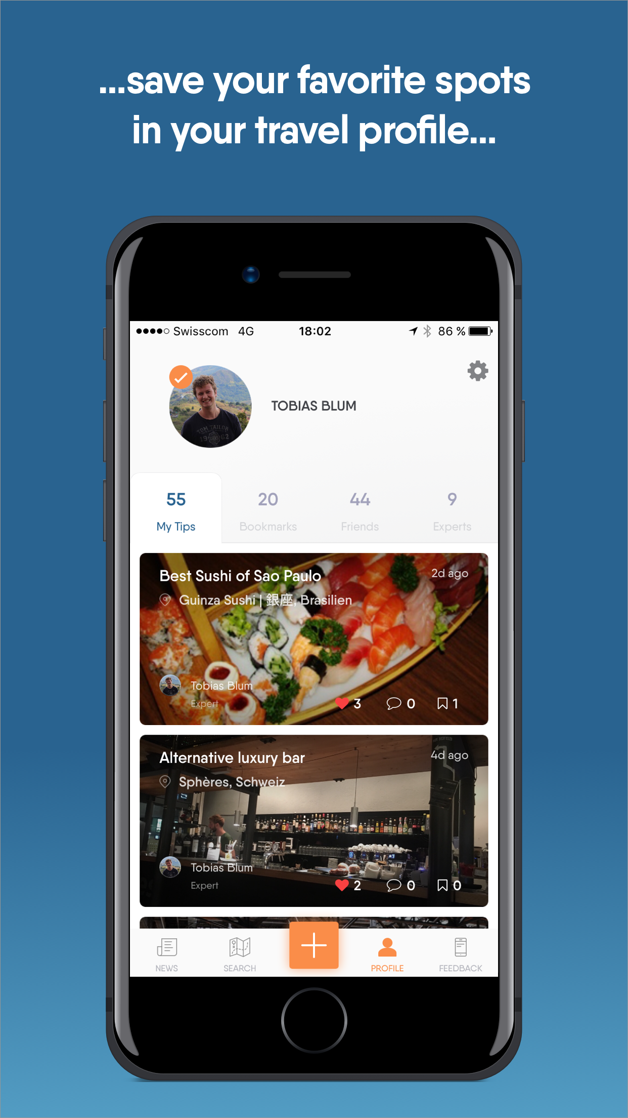 Authentic travel experiences start with TravelGap. Find local spots around the world or in your home town, recommended by your friends and international travel bloggers. See their trusted stories on a map, and share your own favorite spots with your friends and family. GET INSPIRED Be it abroad or in your home town, quickly find all the recommendations of your friends and bloggers on a single map. Filter them for food, drinks, accommodation, cultural activities, nightlife and more, and start exploring new places around you. CHOOSE YOUR CROWD Be it Paris, London or any other tourist attraction, find local spots with no tourists to experience the local vibes and create unforgettable memories. It’s time to close the TripAdvisor tabs. SAVE YOUR BEST EXPERIENCES Be it in the jungle, a bar, your local nightclub or on your couch at home, create your personal recommendations within seconds. Share them on the map for your friends to see, or just keep them secret for you to enjoy as a memor