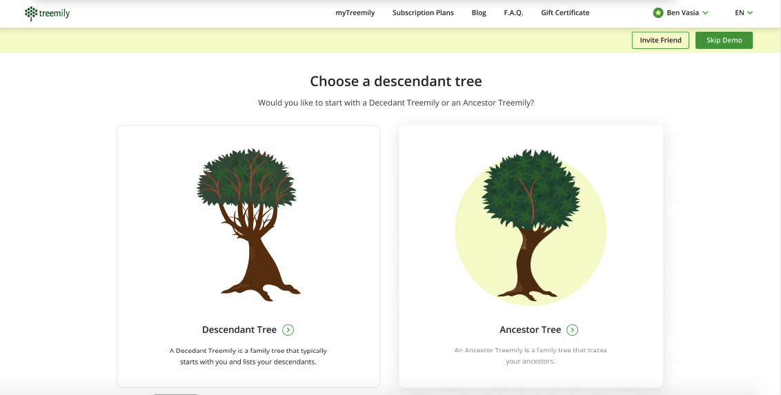 Treemily is online genealogy software for genealogists to help them grow their family trees visually. It makes it easy to discover your family’s past. Simply enter the facts you know about your ancestors to begin. As you fill in more details you will see your tree growing. You can get back to any of the ancestors in your tree and add the missing pieces of your family history puzzle anytime. The builder has an original, easy-to-use interface so you can easily add photos and personal details for every ancestor, create charts and choose between various templates. The Treemily builder is there to help you share your family tree with other family members and let them take part in your research. You can grant access to editing your family tree to your family members so they can edit it online alongside you - research your family history, make corrections, add photos, historical records, and more. Treemily is, therefore, a sharing platform for your family. The full range of features in Treemily is perfect for beginners and professionals alike and includes beautiful family tree charts, profile cards, an automatic merge of duplicate names, poster printing, member search lists, maps with grid and index, colored backgrounds, and much more. The software is based on the freemium model. You can use basic features for free for building a family tree. Premium features of the builder can be unlocked for a one-year or two-year subscription. If you originally created your family tree in another software, you can upload the GEDCOM file to Treemily and get it copied to the system in a matter of minutes. Try our free demo https://app.treemily.com/registration