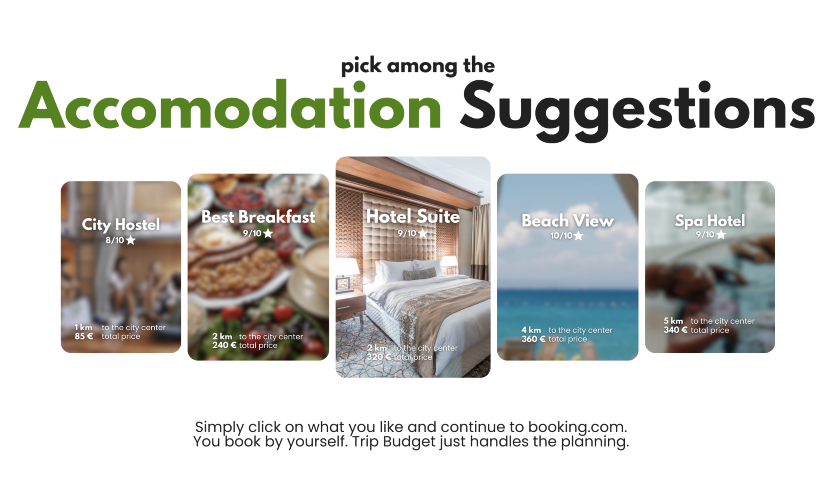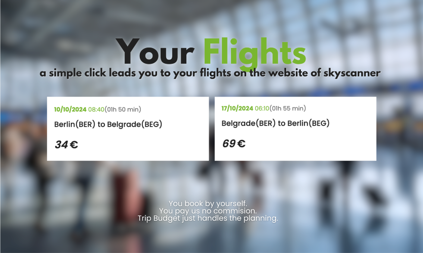 Welcome to the Trip Budget! 😍 I'm excited to introduce you to a smarter way to plan your travels. With the intuitive platform and AI-powered algorithms, Trip Budget makes it easy to discover new destinations, find the best deals on flights and accommodations, and craft personalized trip itineraries – all while staying within your budget. The real-time data integration ensures accuracy and reliability, so you can trust Trip Budget to deliver top-notch recommendations tailored to your preferences. How it works: - Input Preferences: Enter your travel details. - AI-Powered Recommendations: Receive personalized trip plans. - Destination Discovery: Explore curated options. - View and Book: See the best flight and accommodation deals, daily trip itineraries, and dining options all on one page. Easily book everything you need for your trip via trusted websites such as Skyscanner and Booking.com with one click.
