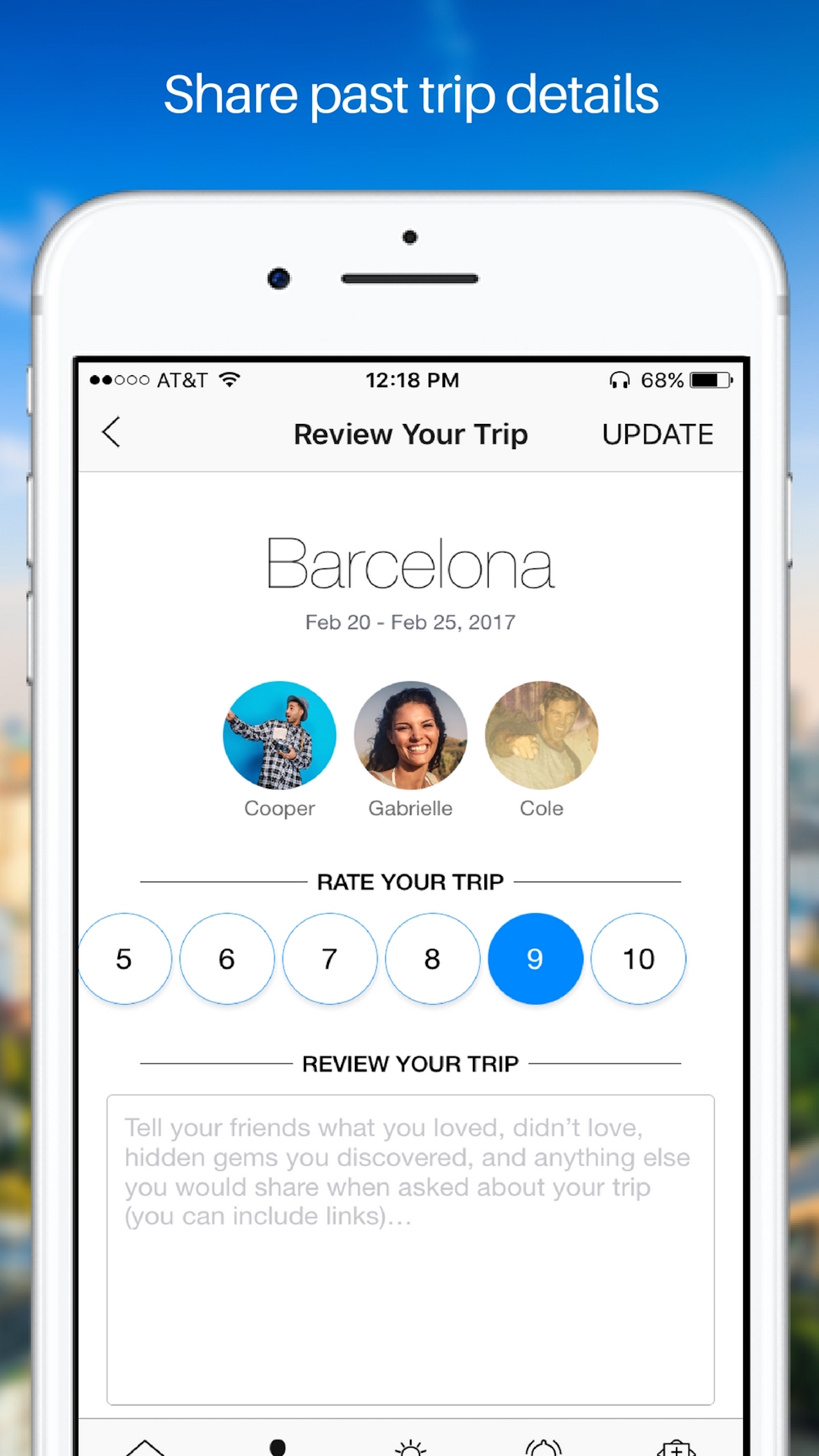 Triphaven is a social travel app that enables its users to collaborate with co-travelers, track their bucket list, and share past trip details with friends. Collaborate: - Add Facebook friends and plan your perfect trip together. - Eliminate using multiple spreadsheets, note taking apps, email chains and random group chats – do all of your trip collaboration and messaging right within your Triphaven trips. - Find and book hotels, flights, and rental cars. Track: - Build your travel bucket list with places, landmarks, and things around the world that you want to experience. - Inspired by one of your friends’ trip pictures or videos? Add it to your bucket list and experience it yourself. - Browse and discover new travel inspiration and ideas daily. Share: - Add your trip pictures, videos, and reviews, and easily share with friends on Triphaven or via text, email or social media. - An easy answer to “Tell me about your Paris trip. I’m going there too!"
