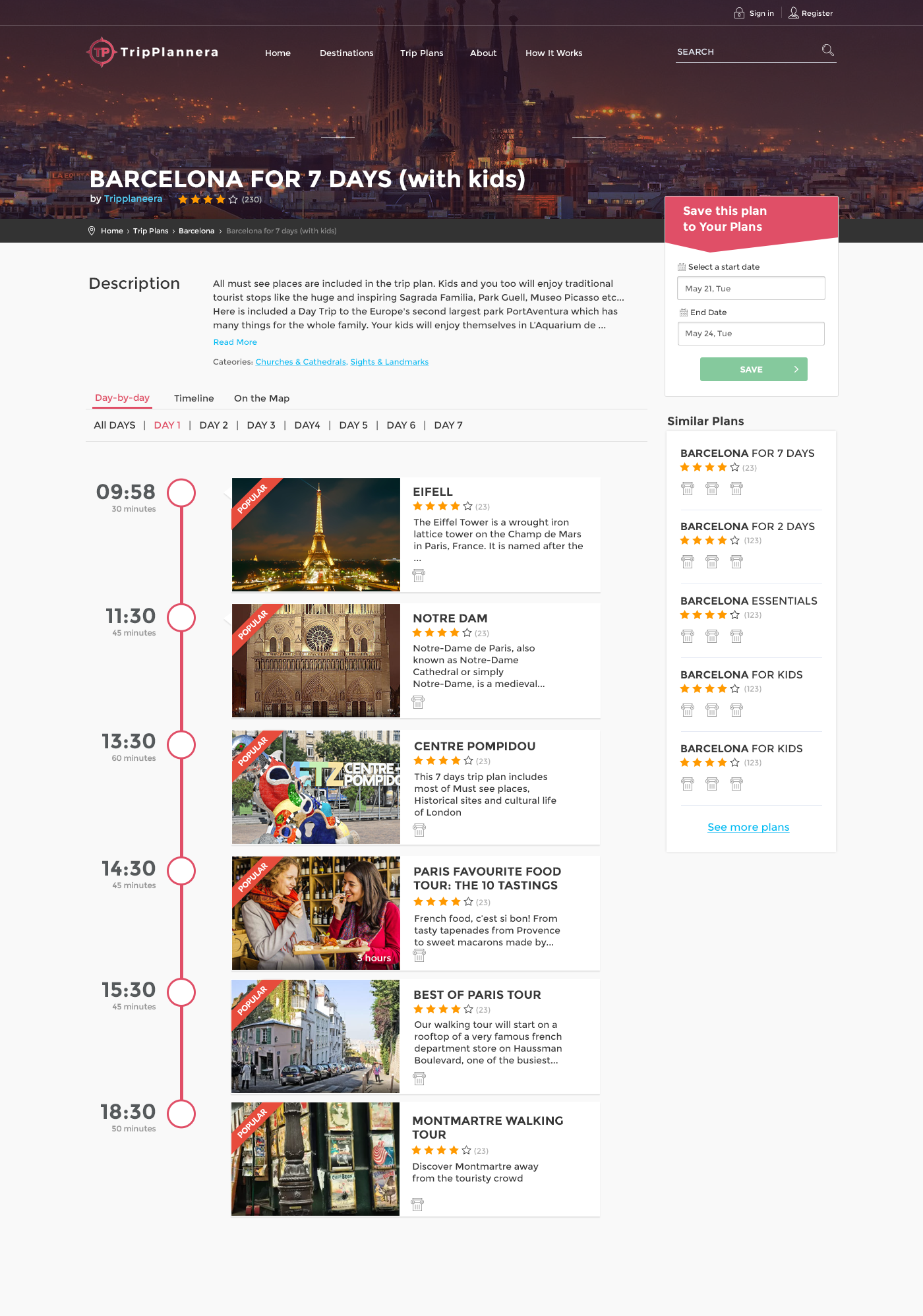 TripPlannera is a personalized itinerary planner, which combines all kind of travel activities into one dashboard (attractions, restaurants, tours,local events, etc,,) and provides editable itineraries created by smart planner or professional guides. All itineraries are free to use (even offline) and travelers can book activities they want from it.
