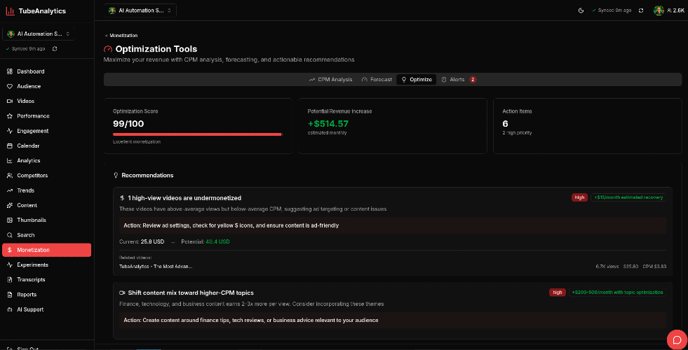 TubeAnalytics is a powerful YouTube analytics platform built for serious creators who want clarity for growth. Track views, watch time, subscribers, revenue, click-through rate, retention, and audience behavior — all in one clean dashboard.