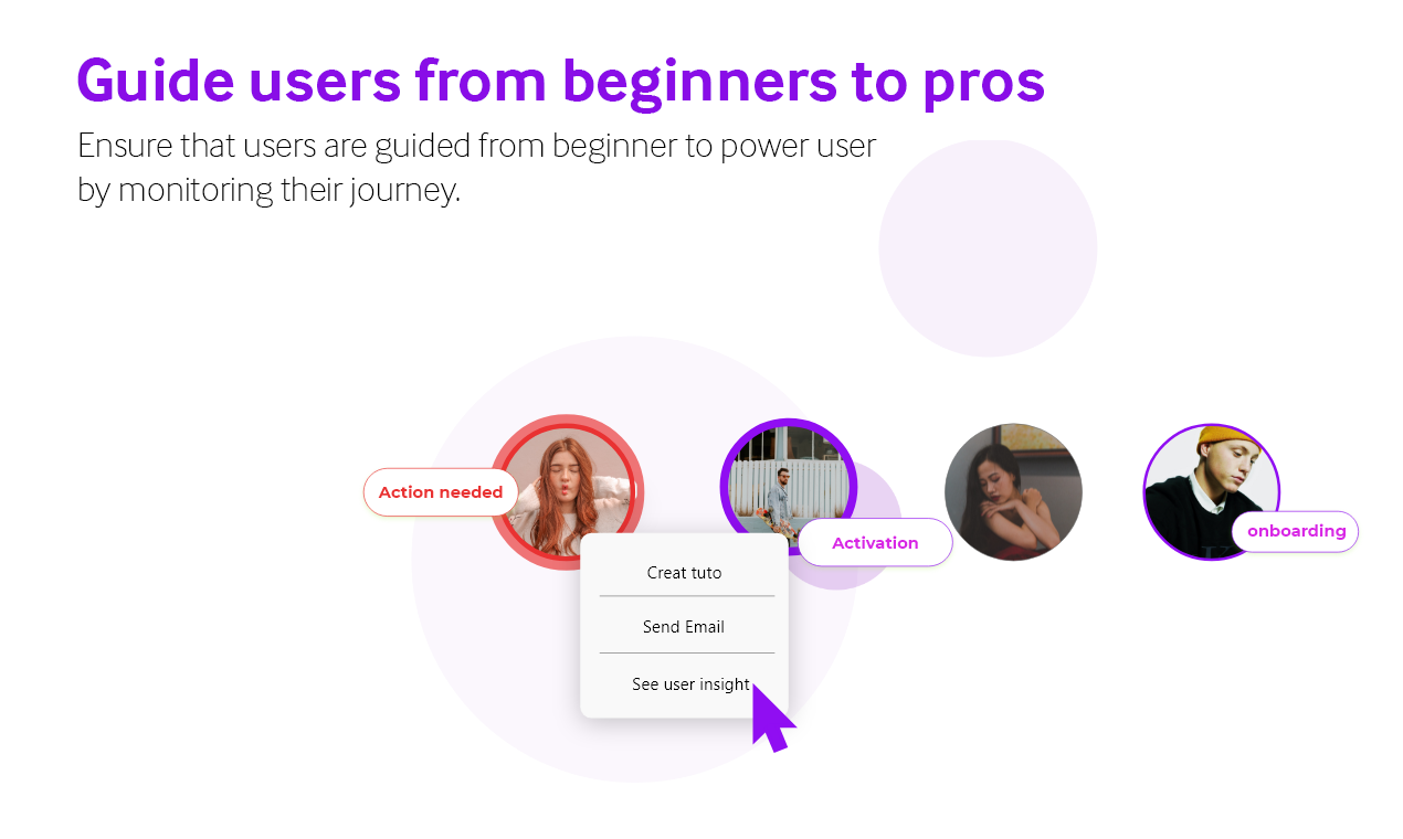 tuto is a customer education platform that customers will love. Helps customer success, support, and product teams to reduce time to value and increase retention and monetization, by providing the ability to create personalized measurable in-app video-like tutorials based on data. Closing the gap between content and adoption.