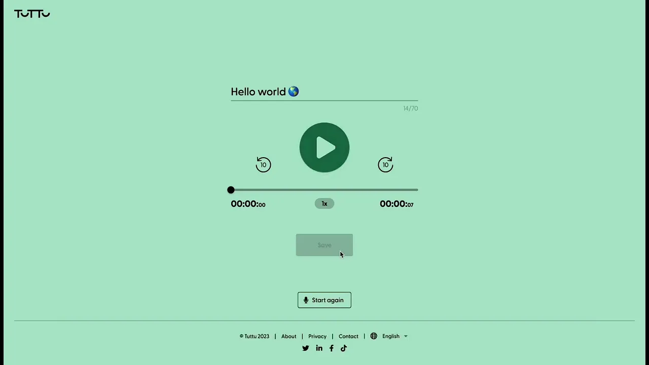 Tuttu is a digital online audio recording tool. With an intuitive and simple interface, users can effortlessly capture new audio, upload pre-existing recordings, and categorise them with descriptive titles. Tuttu supports unlimited audio uploads and offers versatile sharing options, including social media, email, and WhatsApp. Additionally, Tuttu provides embedding capabilities for website integration and QR code generation for each audio, enhancing accessibility and reach.