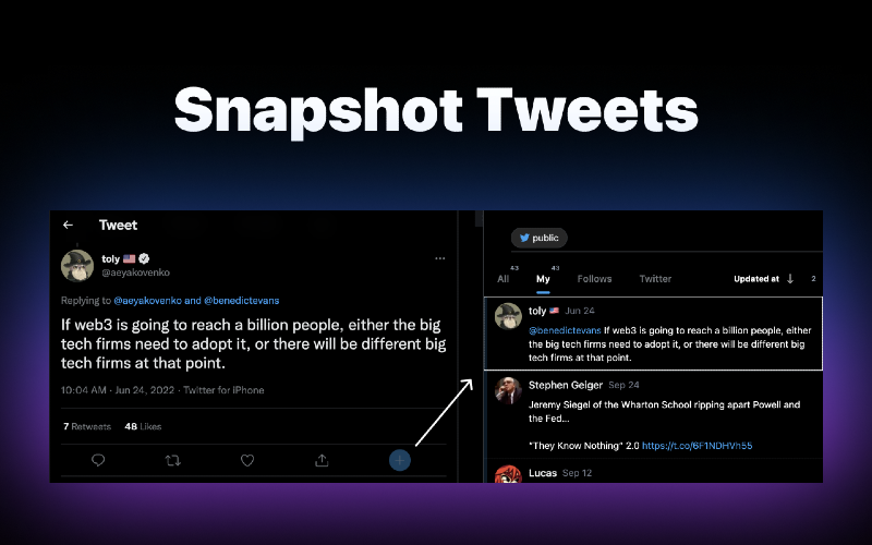 Cofounder of Tweetbase here. We are excited to launch a free forever plan of Tweetbase! Jared and Kyle used to spend hundreds of hours creating notes in Roam. Turned out we and many others never review our own notes. After thinking about why we realized most notes are not useful bc they are poorly written. It's also hard to find them when we need them. We started Tweetbase to solve these problems. Tweetbase is a personal knowledge base built on top of Twitter. Twitter is nine-tenths of your second brain. Everything interesting is already said on Twitter. Instead of wasting time creating notes no one reviews, we should just search for the best stuff on Twitter just-in-time. With Tweetbase chrome extension, you can turn Twitter into your second brain. We believe this is the future of personal knowledge management: leverage the hivemind on Twitter. If your second brain is Twitter, Tweetbase is Neuralink.