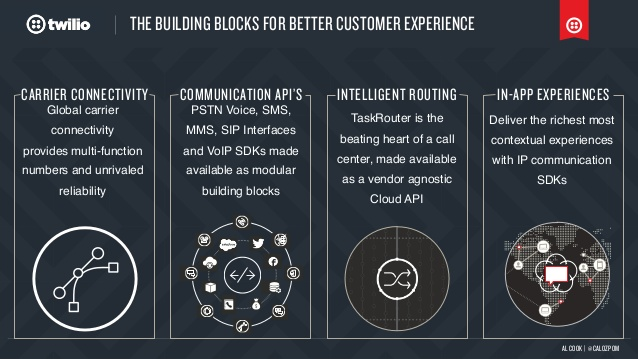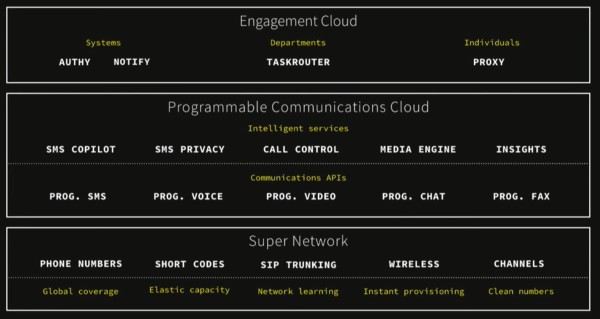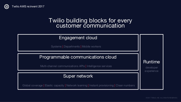 API platforms for the entire customer journey Engagement Cloud is a suite of communications software to build, edit, and deliver new customer experiences in record time. -Create a custom solution without the custom code Build in the language you already know or collaborate with others in your organization using Twilio Studio, an intuitive drag-and-drop visual editor. -Add channels and features on the fly A single interface for multiple channels — SMS, phone calls, in-app chat, email, and messaging apps — saves you the effort of maintaining separate integrations. -Build it right the first time All the logic for common applications and even intricacies like user segmentation and privacy are all handled for you — so you don’t have to worry about getting it right.