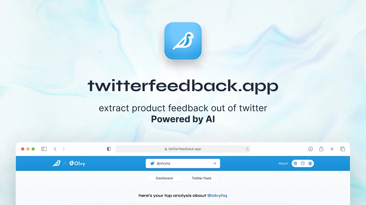 TwitterFeedback.app is a free tool that allows you to track, analyze and extract meaningful data out of the feedback you receive on Twitter. Learn who your top users are, what people feel about your product, what words they use the most and much more (Even works for your competitors twitter handle 👀)