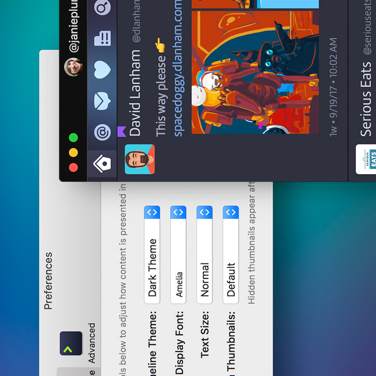 he Twitter app for people who actually use Twitter. Now all-new for macOS. -Twitter Your Way No ads, promoted tweets or "while you were away" updates cluttering your chronological timeline. -Designed for macOS Support for Notification Center, Retina displays, built-in sharing, full screen mode, and more. -Timelines Galore Supports multiple windows all set to display the accounts and timelines you desire. -Fully Accessible Navigate the timeline, compose tweets, and even attach image descriptions quickly and easily using VoiceOver, etc.
