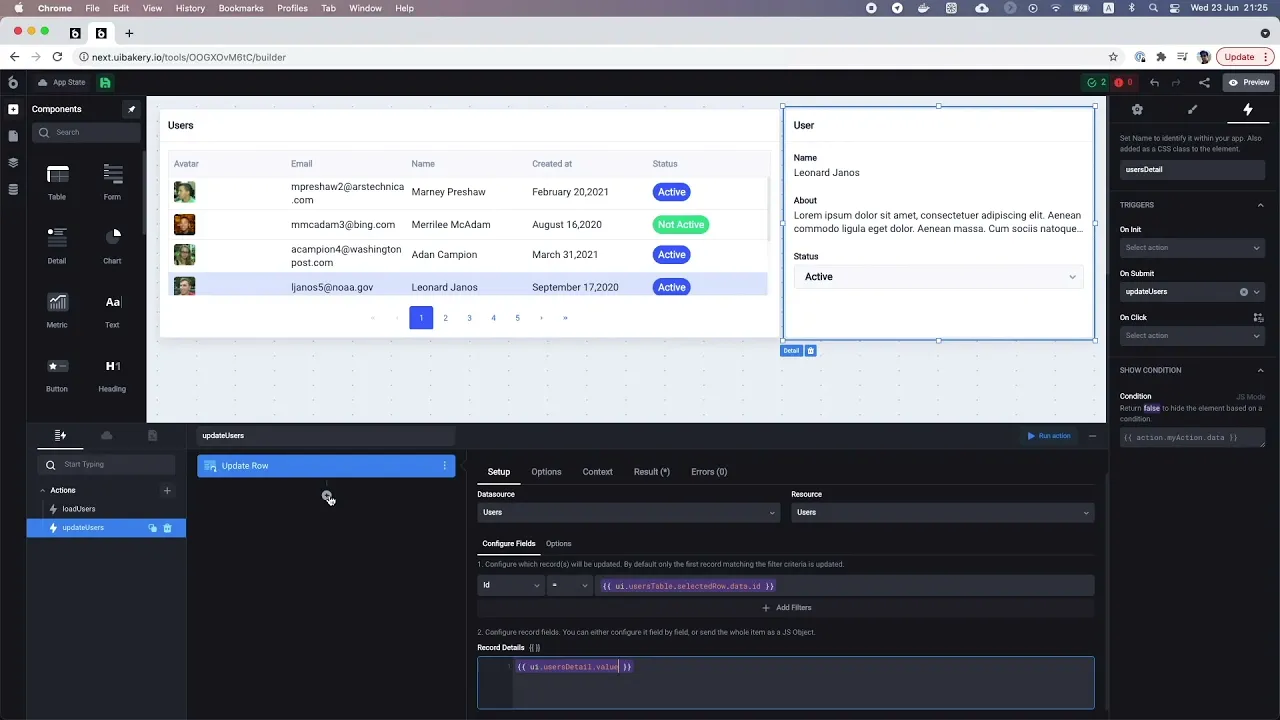 UI Bakery is a fast visual internal tools builder with 25+ ready-made UI components including Tables, Charts, Maps, Buttons, and more. You can connect your databases (PostgreSQL, MongoDB, MySQL), integrate third-party APIs (Stripe, HubSpot, Salesforce, Slack), deploy your app in a click, host it on a custom domain if needed. Add custom JavaScript code anywhere in your app, write SQL queries, send HTTP requests. Set user permissions.