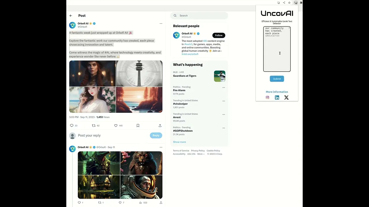 UncovAI introduces an innovative platform for detecting Generative AI text, offering a blend of efficiency and sustainability. Instead of relying on resource-intensive Deep Learning models, we employ a mathematical hypothesis that effectively distinguishes between AI-generated and human-authored texts. Moreover, we deployed Chrome and Firefox extensions to ease access to our solution.