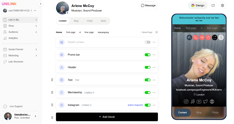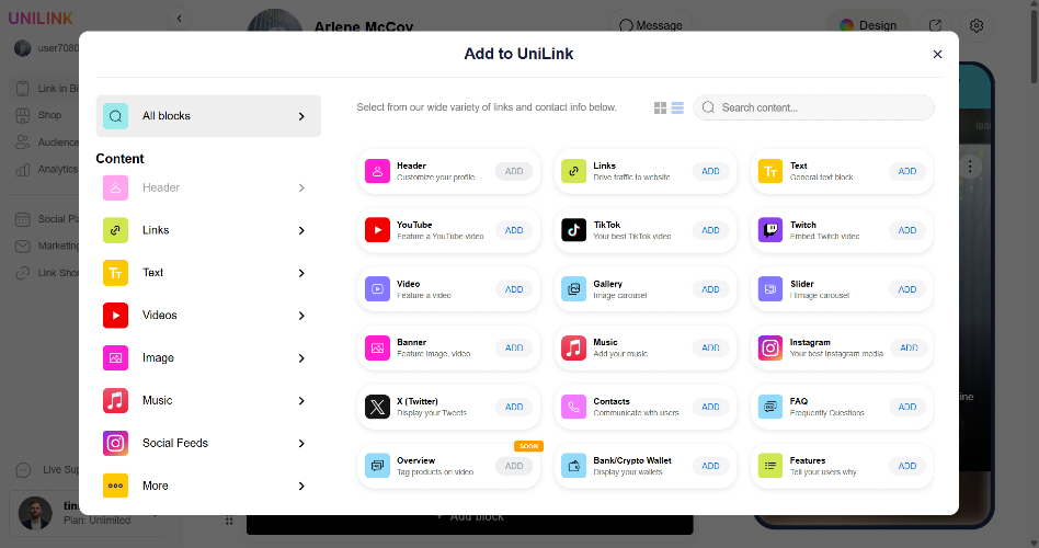 UniLink is a no-code mobile website builder for creators, entrepreneurs, and small businesses. Build link-in-bio websites in minutes with custom branding, content blocks, sales tools, analytics, a built-in link shortener, qr codes, and a social media planner to schedule and publish posts. Promote digital products, offer services, or grow your brand with a flexible, conversion-friendly page. Everything from video blocks and email capture to social scheduling and product sales — all built into one simple platform.