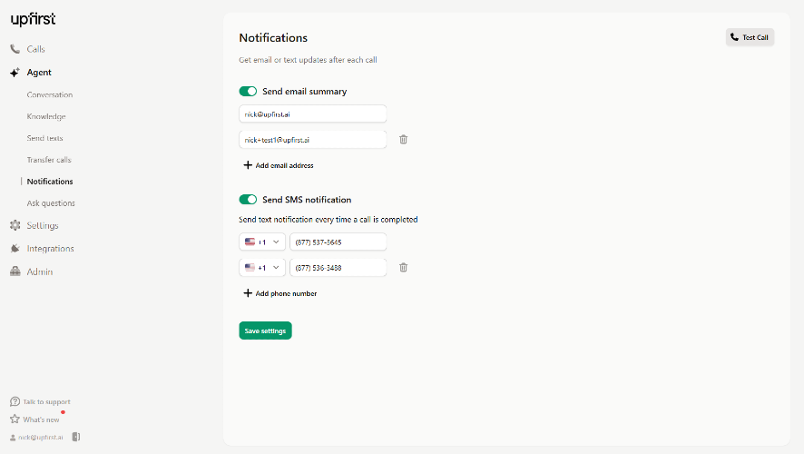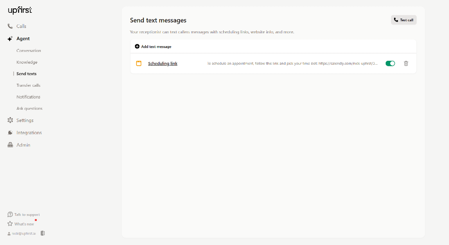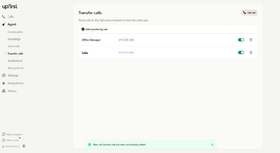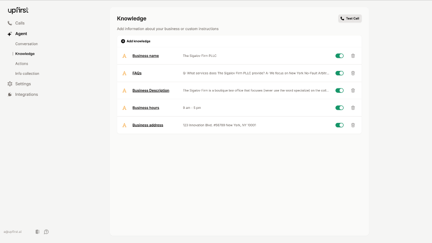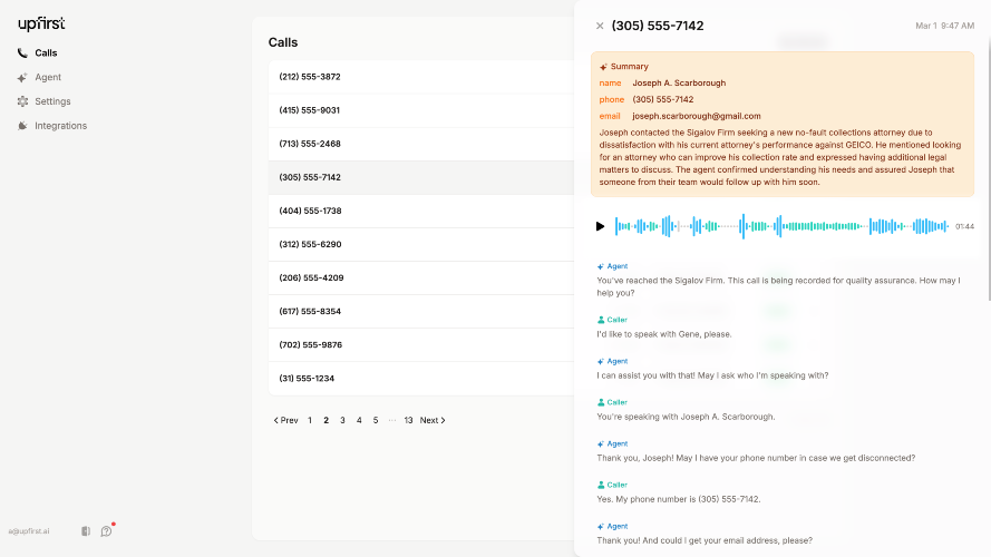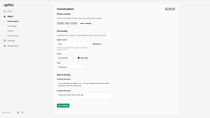 Upfirst is an AI-powered virtual receptionist. Founded on the belief that small businesses should be able to afford great answering services, we help people change how they run their businesses by making it easy and affordable to get a virtual receptionist that’s dedicated to them. Upfirst helps small businesses answer calls around the clock so that callers never reach a voicemail. Businesses use our AI answering service to give callers an immediate human-like voice to answer questions, take messages, set appointments, and more. Knowing that every call is covered by a knowledgeable receptionist, business owners are able to focus on the day-to-day tasks that continue to drive their business forward, saving themselves time and money.