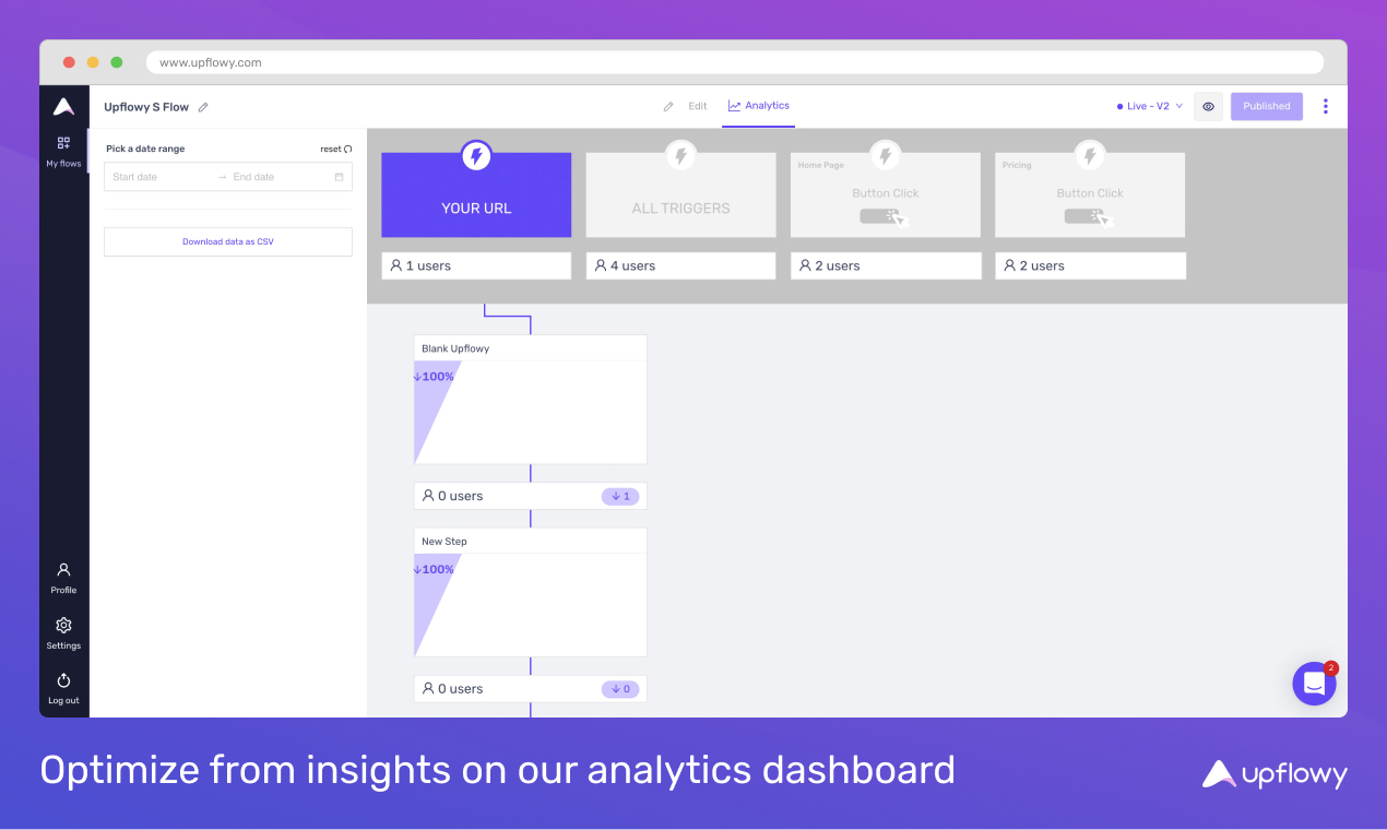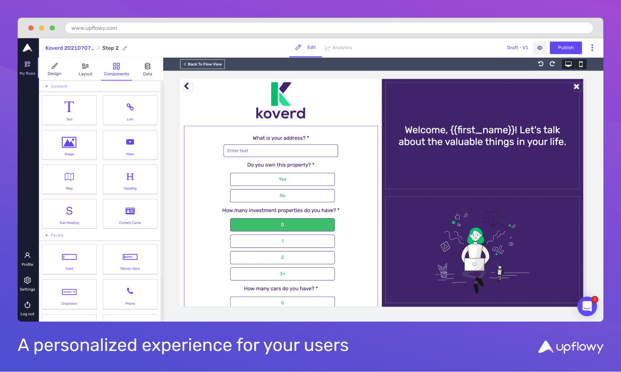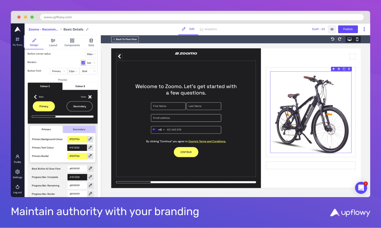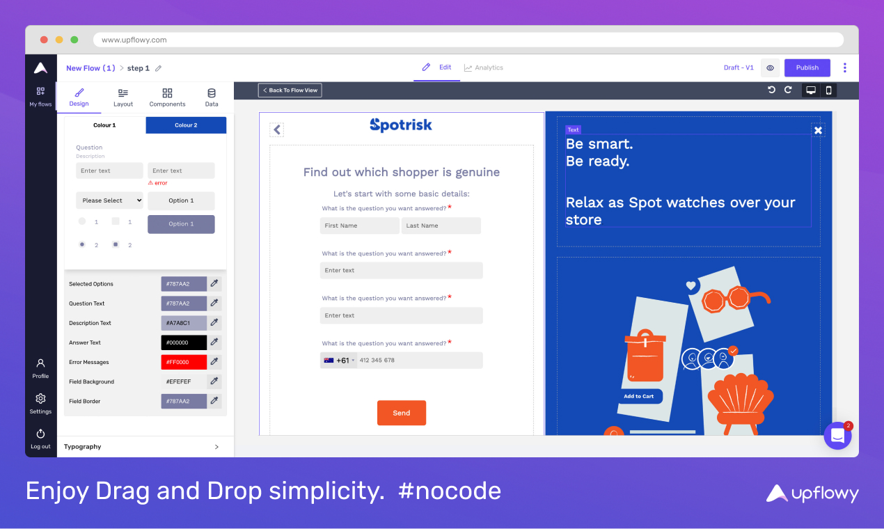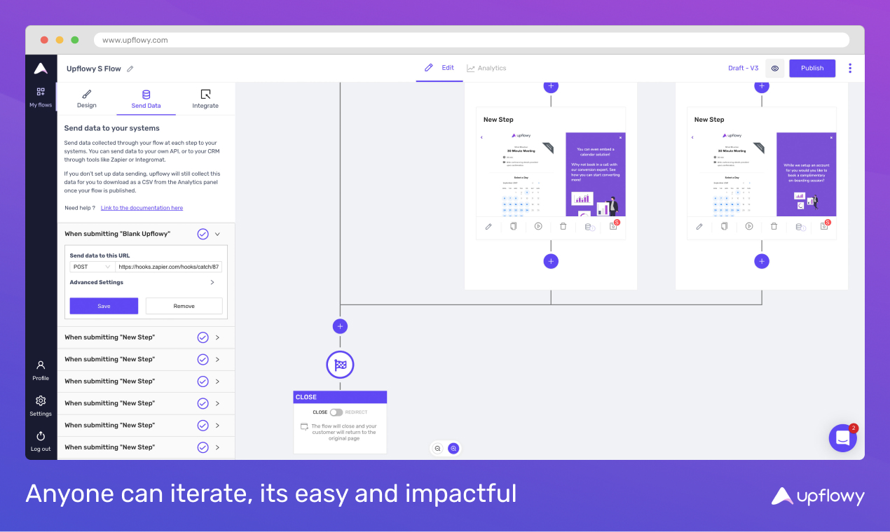 Upflowy is a no code SaaS product that gives you complete control of your signup flow, allowing you to design, tell your brand story, analyse each point and then optimise for success. You can design state of the art flows at no IT cost, with world class templates, aligned to your branding and storytelling. You’ll be able to measure instantly and at every point, with actionable insights and instant funnel analytics. If you’re looking to test, you’re able to define smart experiments with A/B testing and personalisation capabilities that are easy as pie to set up.