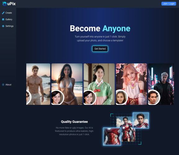 uPix was created to offer an easy, seamless way to generate high quality, realistic selfies in just one click. The founder had played around with AI image generation and realized that there was an overwhelming amount of things to learn, such as the right prompt and settings to use. Wouldn't it be nice if there was an app that just works straight out of the box? Thus, we created uPix - an easy & hassle-free AI selfie generator. Turn yourself into anyone in just 1 click. Simply choose a template, upload your face, and click generate. No prompts, no complicated settings - just high quality, ultra-realistic generations. Your new look is just a click away!