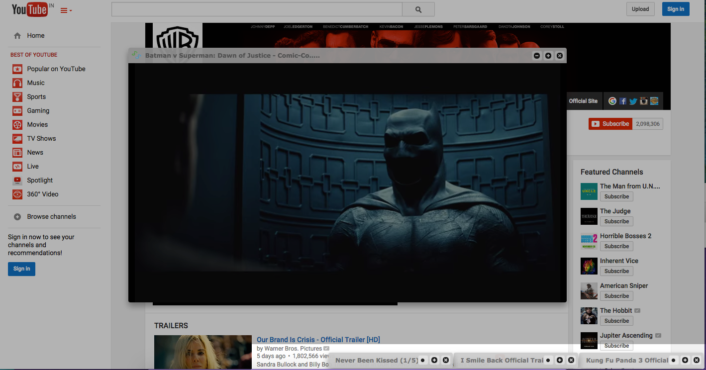 Helps you view & manage multiple ad-free youtube videos in a single tab. Are you that avid videophile who keeps juggling between tabs to watch videos? Or that casual person who wants some quality popcorn time without bugging advertisments while wathcing videos? Watching YouTube can always be a frustrating experience to jump across windows. On top of it are the ever-so-boring-ads, suggestions, and what not? Whoof! uPop is the answer to making your YouTube experience easy and fun! Create chat-like windows to minimize miniature tabs. Manage all your content in one page. Isn't that awesome? Let's show YouTube some love again