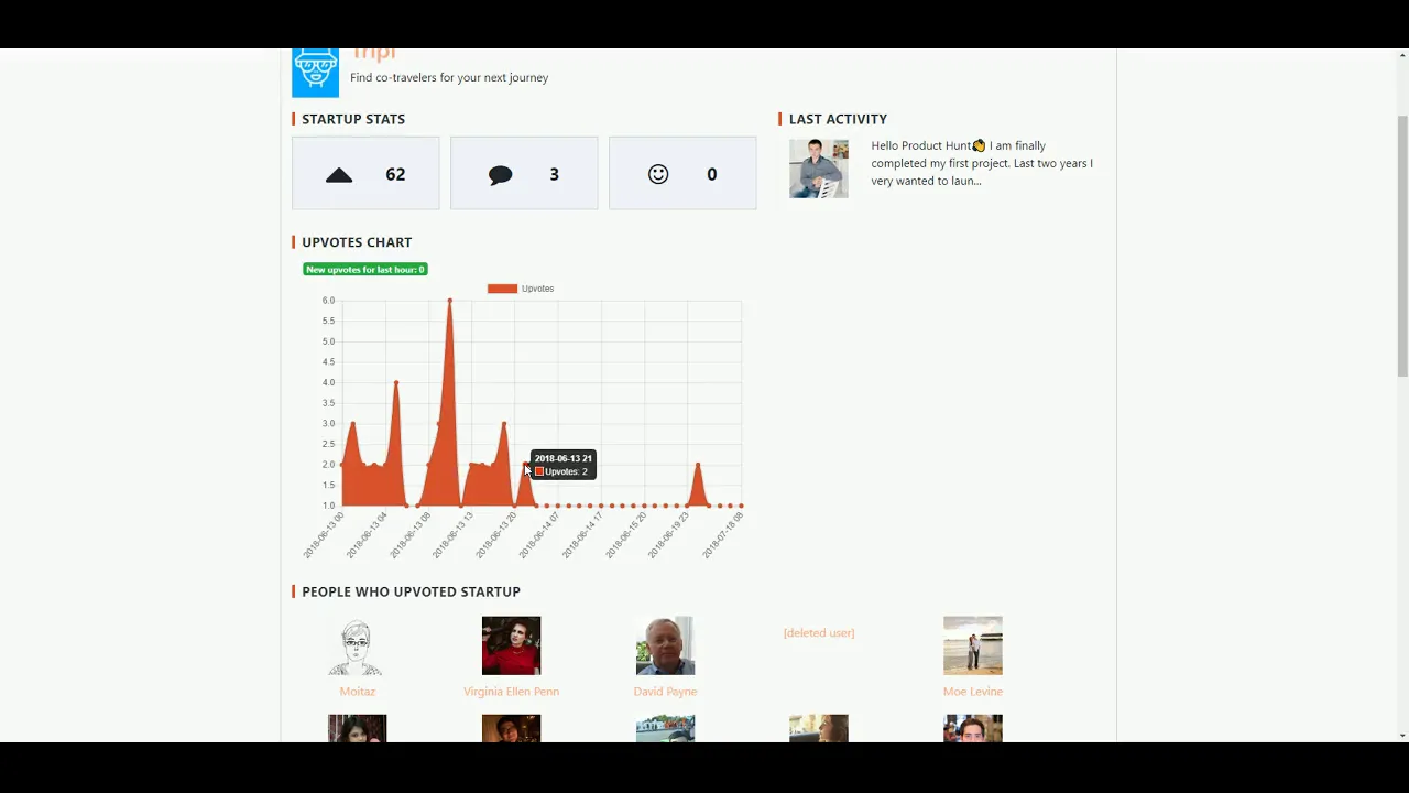 This is a tool for makers that publish their projects on Product Hunt. Upvote Bell can show realtime notification for new upvotes for projects that published in the last 48 hours. Every project that you publish on Product Hunt, have own page where you can look upvote chart, a list of people who upvoted project and last comment activity. P.S When I launched my first project, I refresh the page every 3-4 minutes for seeing new upvotes, it was a little strained. Put ? if it's true?