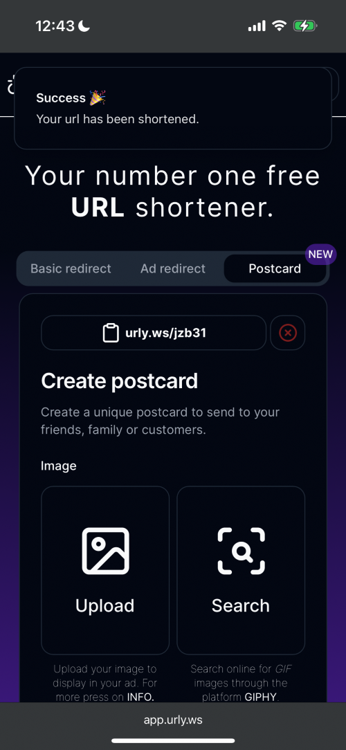 Urly is a unique url shortener, with options to showcase your custom ads to customers or even send postcards to friends. It’s totally free and requires non registration.