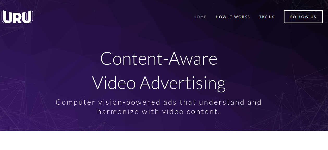 Computer vision-powered ads that understand and harmonize with video content. -Publishers & Creators Uru instantly understands the content of your video and all of the untapped monetization opportunities inside it. Based on these learnings, it pinpoints appropriate brand partners and instantly immerses them in your video in a seamless, likable way. -Brands Uru helps locate on-message videos, then immerses your brand in them - all for a fraction of the cost of traditional branded content. Enjoy 100% visibility and 0% skippability across all video platforms and reach consumers from inside the videos they love. -Video Platforms Uru empowers your users to monetize in a new way, even on archival content, and gives your advertisers another premium ad unit that scales across all uploads. Enrich your whole ecosystem with a third, smarter pillar of video monetization.