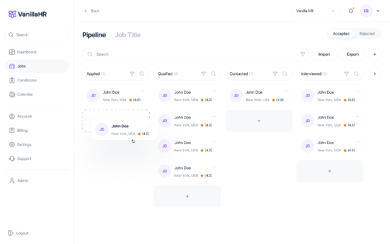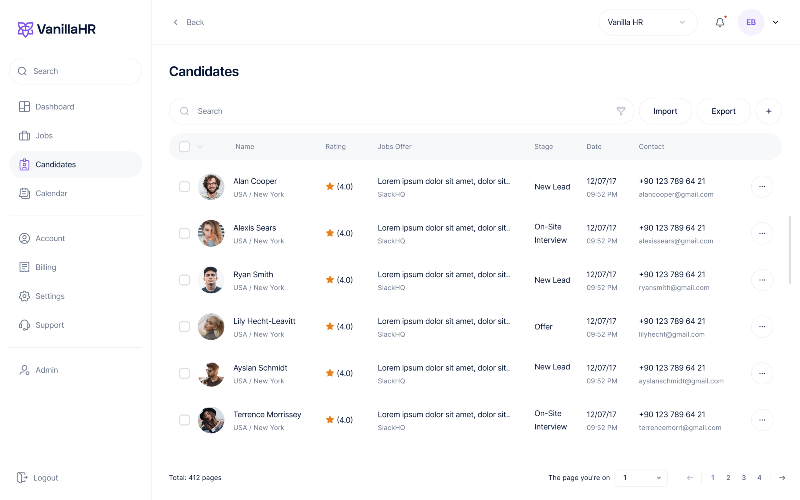 VanillaHR is an AI-powered, cloud-based hiring management software that makes it easy to source, interview, and hire the best candidates every time. View a dashboard of your talent pipeline, post openings to 200+ job sites, assess applications and deliver an engaging candidate experience with ease. Utilize video interview insights report for objective feedback about your top candidates. Sign up today for your free 15-day trial (no credit card required).