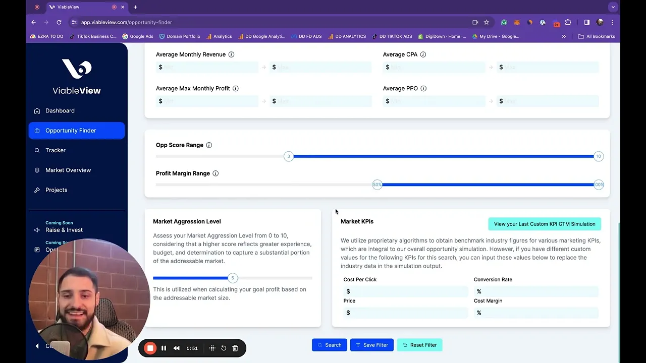 Simply put - ViableView informs entrepreneurs to what markets and niches have the most profit to be made in - often ones they didn't even know existed. How does that work? We collect a-lot of little pieces of information and data on products and services that people sell. We then take all of that data and run it though what we call a Viability Simulation. So we simulate (replicate the operation of a real-world process) to see how much profit and at what margin you would make if you advertised a product in the current market condition. We then output indication metrics to gauge if it is viable (capable of working successfully; feasible). The Viability Simulation ultimately takes a-lot of messy un-usable data and turns it into actionable insight for entrepreneurs via indication metrics.