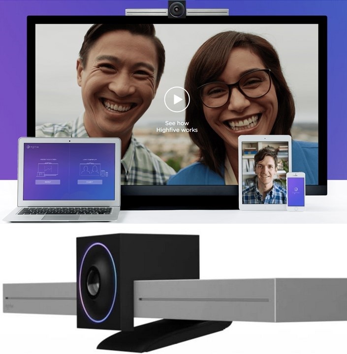-All in one video conferencing hardware and software Set up your rooms in 5 minutes with Highfive video conferencing hardware. -The easiest way to join a meeting Highfive is hands-down the easiest way to join a video meeting. No pin codes, no passwords, just readable meeting links. -For every employee and every meeting room Unlimited meetings, minutes and hosts. No per-user fees, just simple and predictable per-room pricing.