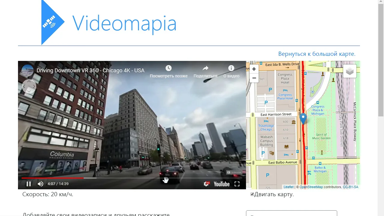 Videomapia is a search engine to find video journeys which have been synced with an interactive map. Using the site you can find videos of journeys which have been shot around the world. Each of these videos can be viewed alongside an interactive map which is synced to automatically follow the journey as it is shown in the video. It is a crowdsourcing. Anyone can add a journey video to the Videomapia interactive map by uploading the video to YouTube and submitting the GPS track to Videomapia.